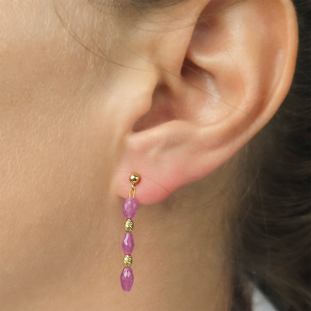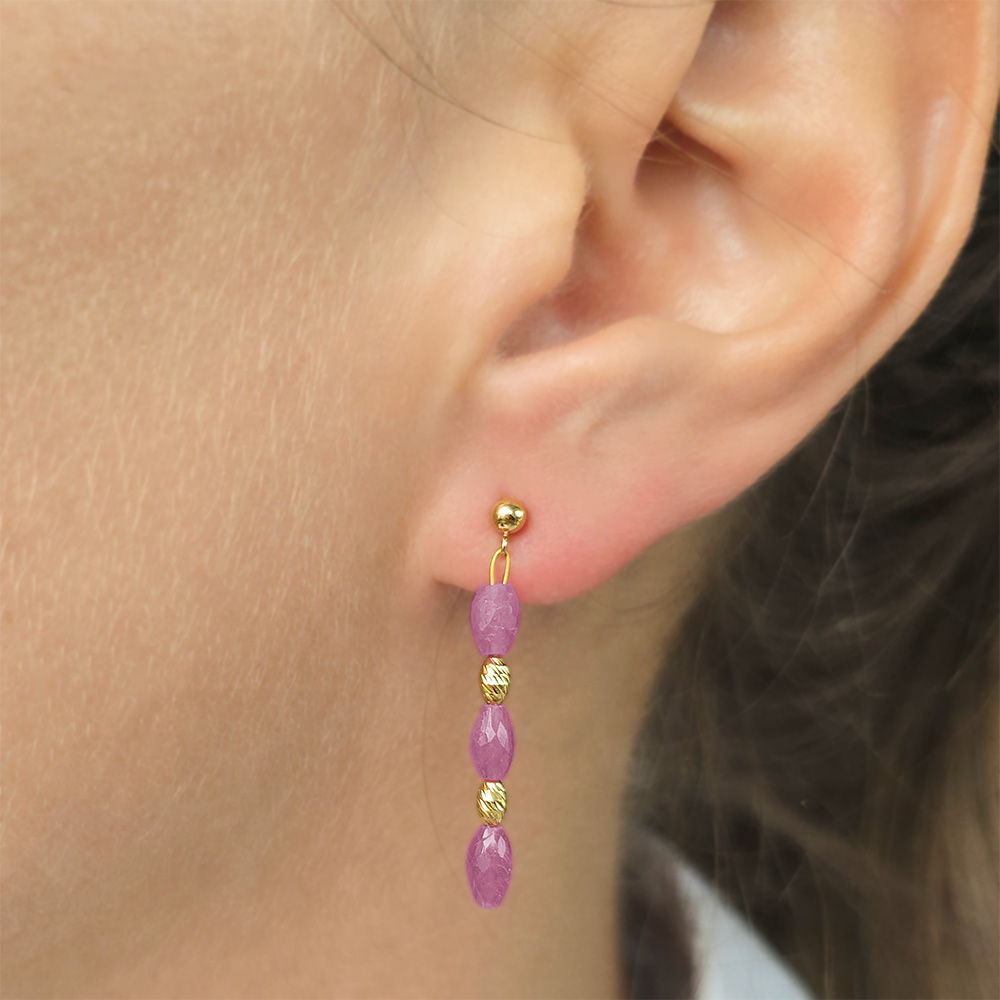 Ενδιάμεσα στα ρουμπίνια υπάρχουν 4 χρυσά οβάλ φασεταρισμένα στοιχεία 18 καρατίων, που προσθέτουν περισσότερη λάμψη στα σκουλαρίκια.