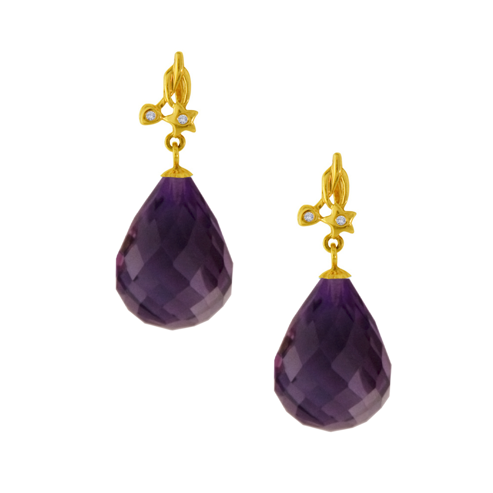 • Ένα υπέροχο ζευγάρι σκουλαρίκια με Amethyst ή Peridot Cubic Zircon διαμέτρου 12x16 χιλιοστών.