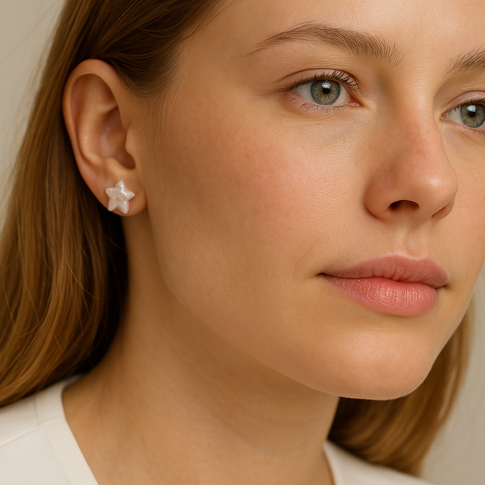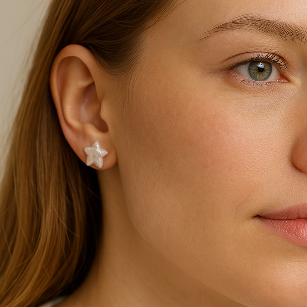 • Ένα υπέροχο σκουλαρίκι με λευκά μαργαριτάρια Fresh Water Pearl διαμέτρου 12 - 13 χιλιοστών σε σχήμα αστέρι.
