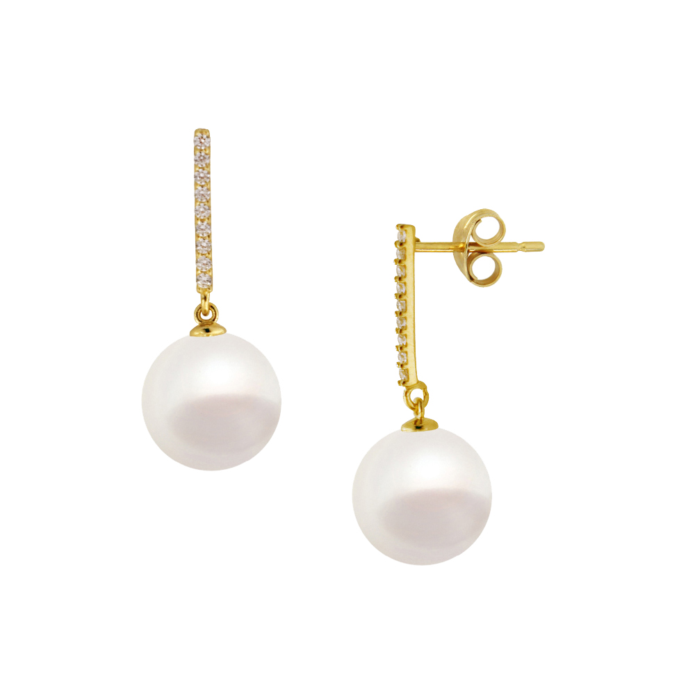 Σκουλαρίκια με λευκά μαργαριτάρια και ζιργκόν σε χρυσή βάση Κ14 - M124345
