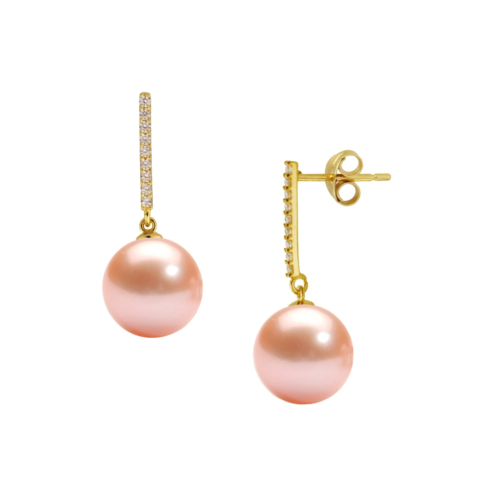 Σκουλαρίκια με σομόν μαργαριτάρια και ζιργκόν σε χρυσή βάση Κ14 - M124345S