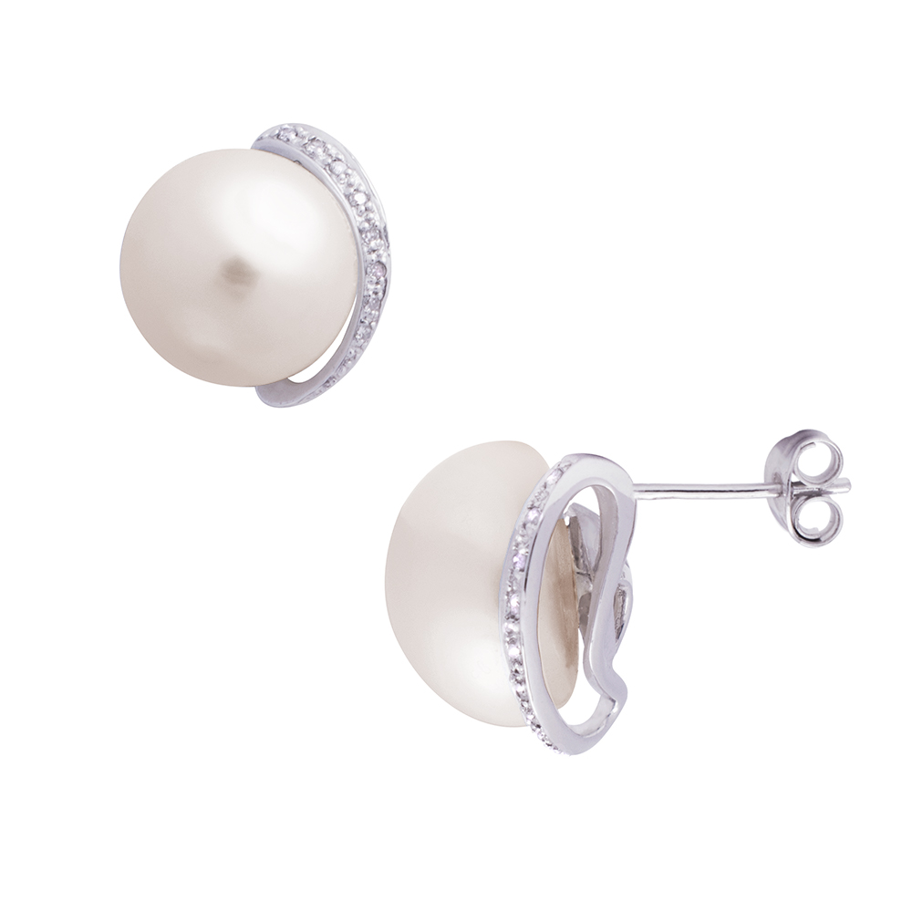 Σκουλαρίκια σε Κ18 λευκόχρυση βάση, λευκά μαργαριτάρια και διαμάντια - L317087