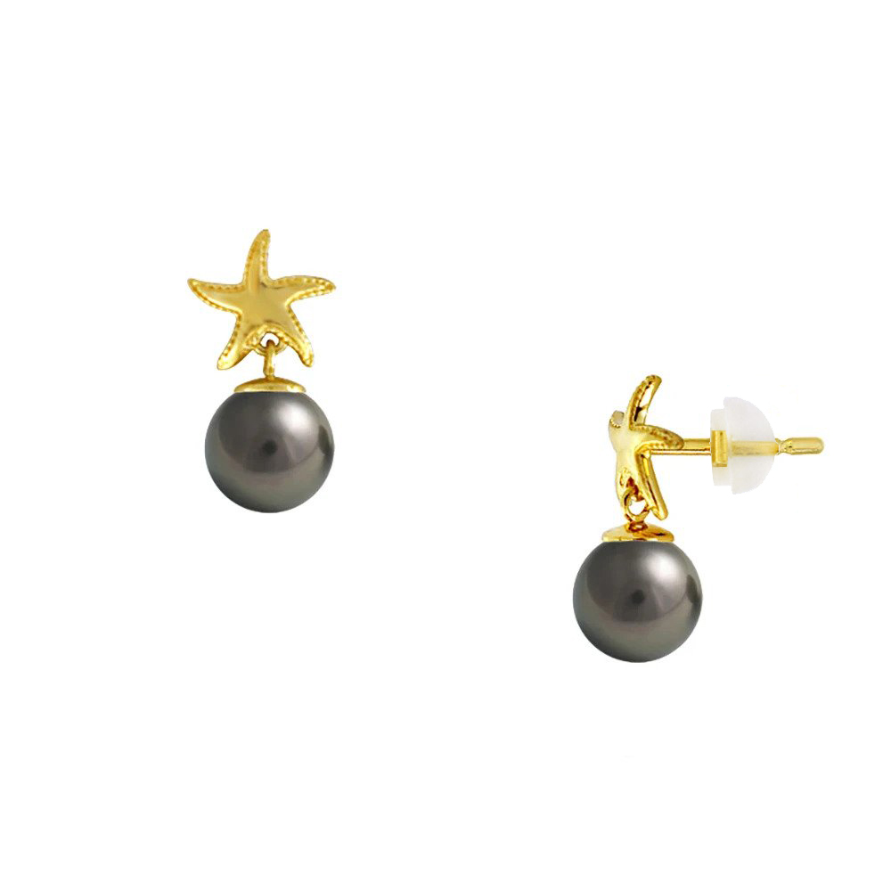Σκουλαρίκια με μαύρα μαργαριτάρια σε χρυσή βάση Κ14 - M124213B