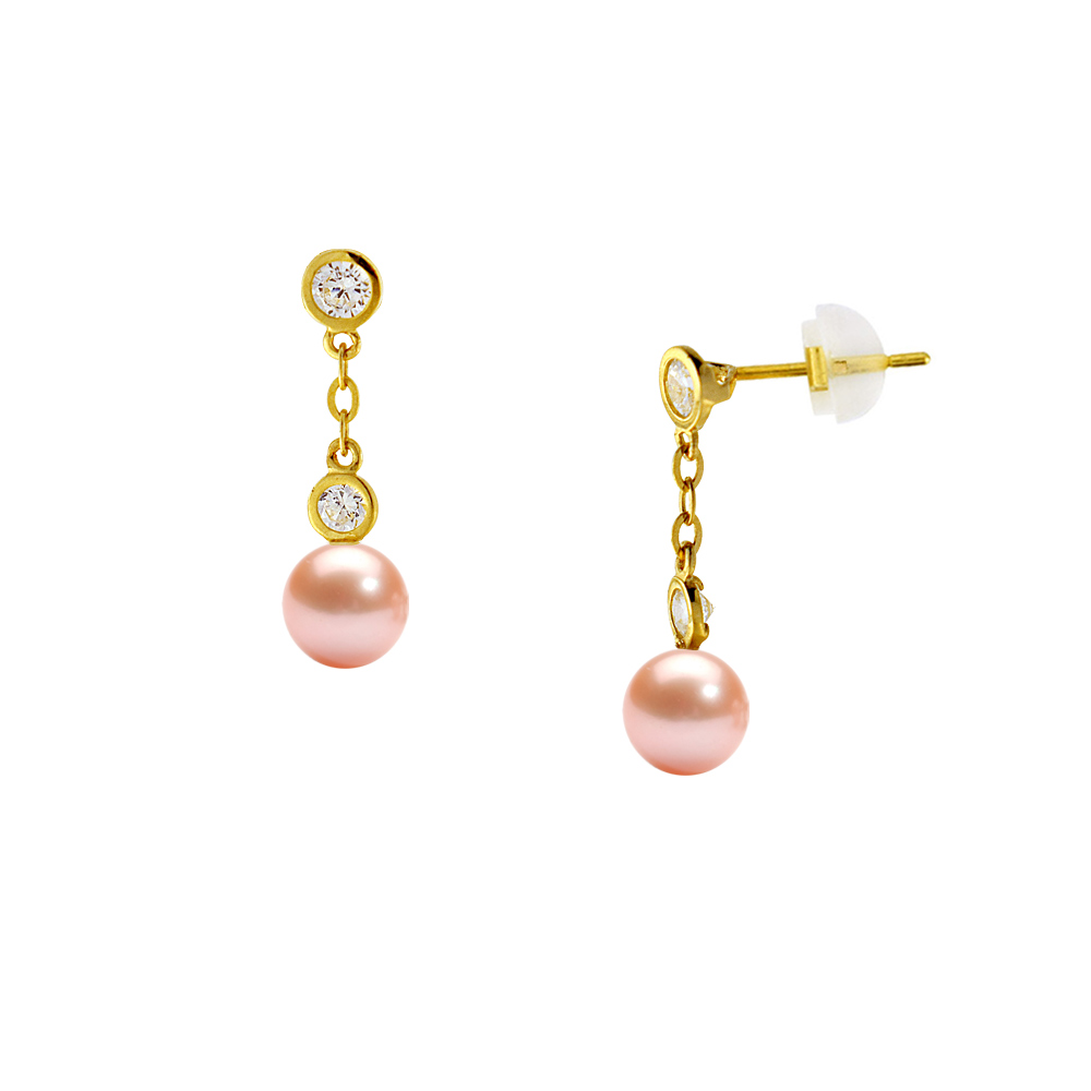 Σκουλαρίκια σε Κ14 χρυσή βάση με σομόν μαργαριτάρια και ζιργκόν - M123824S