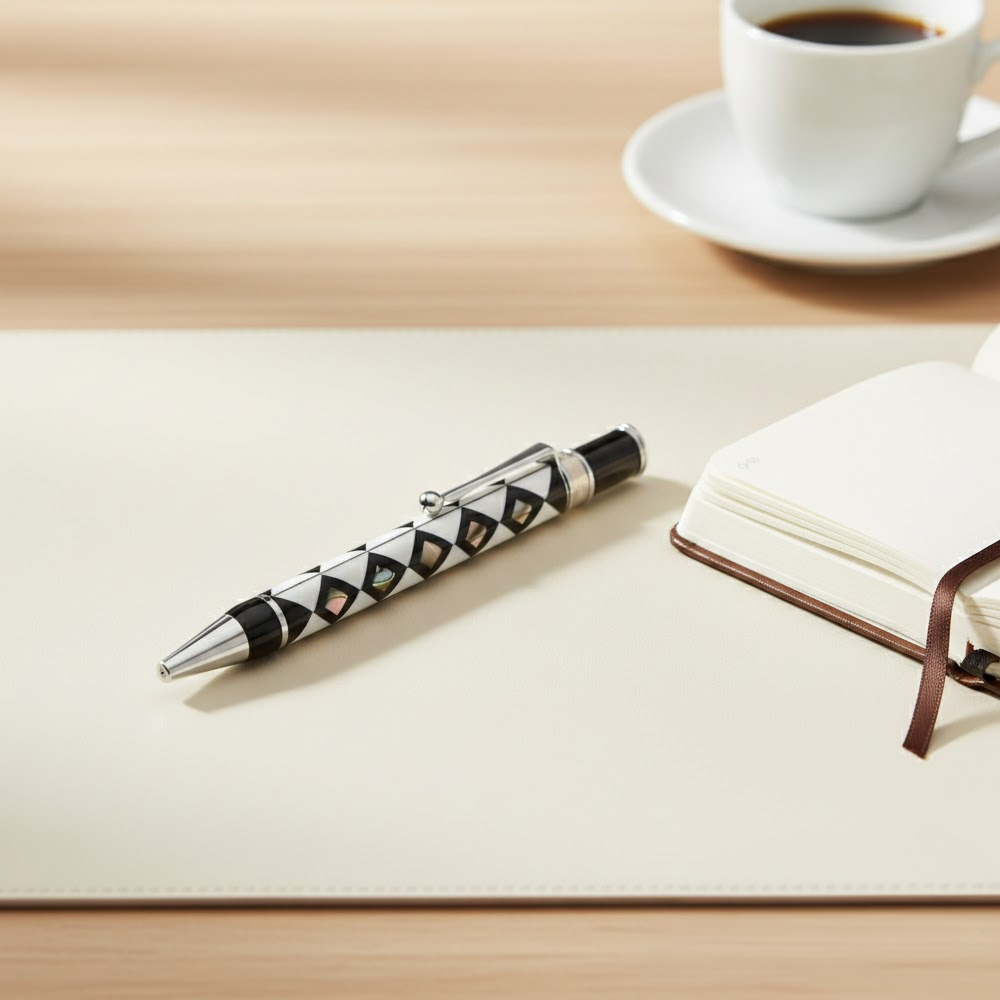 • Η νέα συλλογή στυλό "Pearl Pen" έχει ως υλικό κατασκευής "Mother Of Pearl" το οποίο είναι το εσωτερικό τμήμα μαργαριτοφόρου οστράκου.