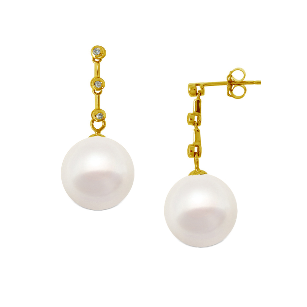 • Ένα φανταστικό ζευγάρι σκουλαρίκια με 2 εντυπωσιακά λευκά μαργαριτάρια QTV Akoya Pearl άριστης ποιότητας διαμέτρου 10-10,5 χιλιοστών σε σχήμα Round (στρόγγυλο).