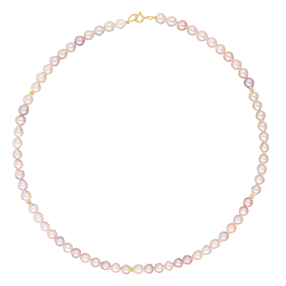 -13% Κολιέ με Κ14 χρυσά στοιχεία και σομόν μαργαριτάρια - M125109