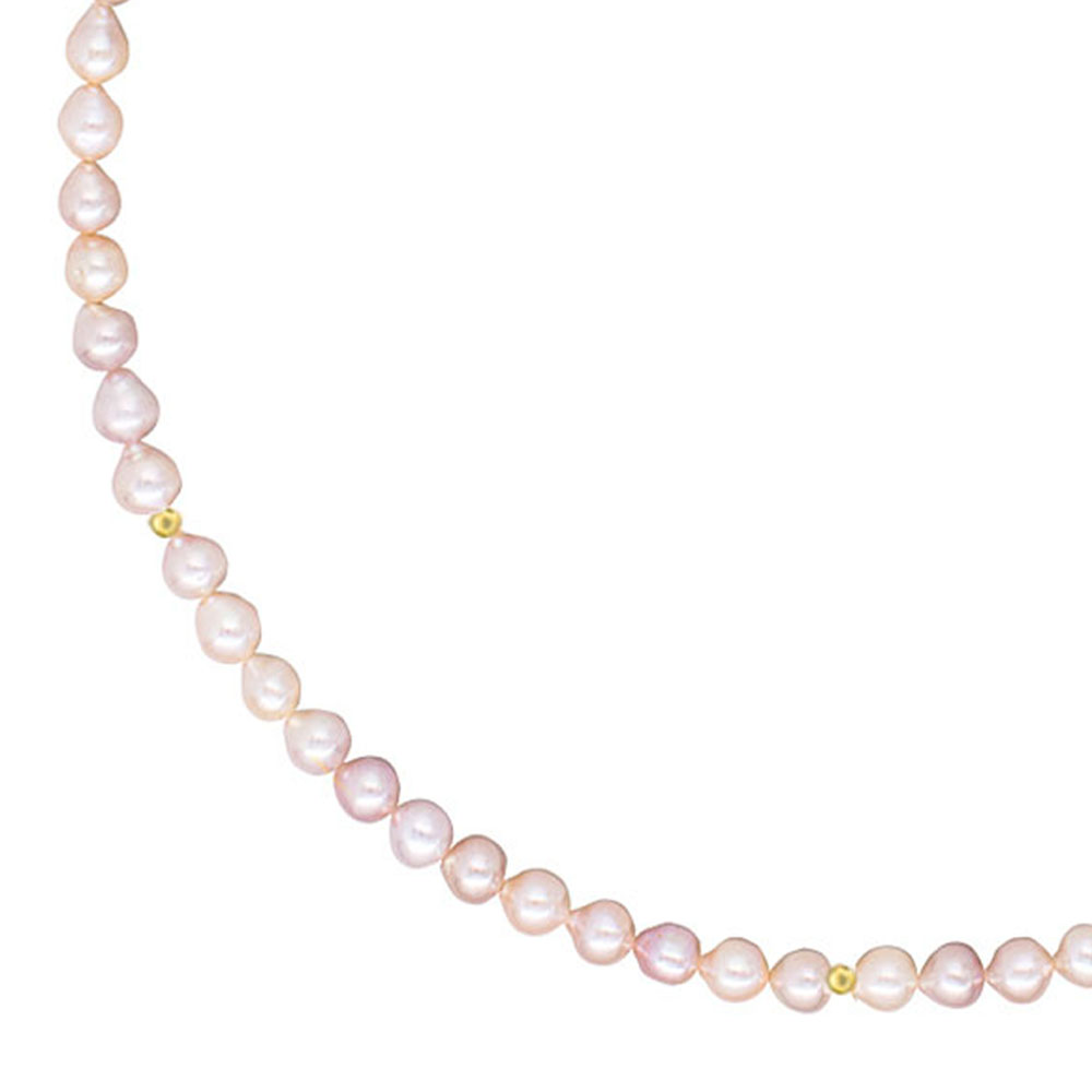 • Ένα υπέροχο κολιέ από σομόν μαργαριτάρια γλυκού νερού Fresh Water Pearl διαμέτρου από 5-6 χιλιοστών, σε σχήμα Semi Round.