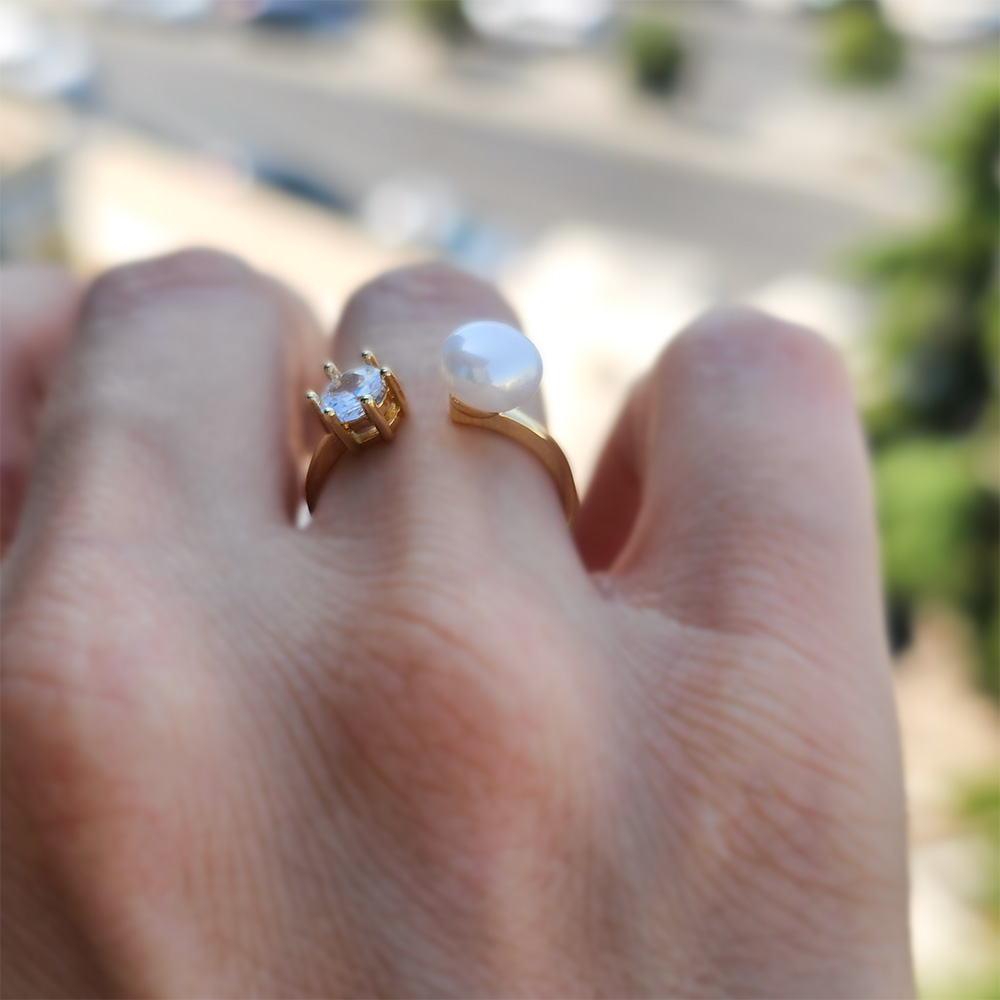 Δαχτυλίδι με λευκά μαργαριτάρια και ζιργκόν σε επιχρυσωμένο μέταλλο - R124613