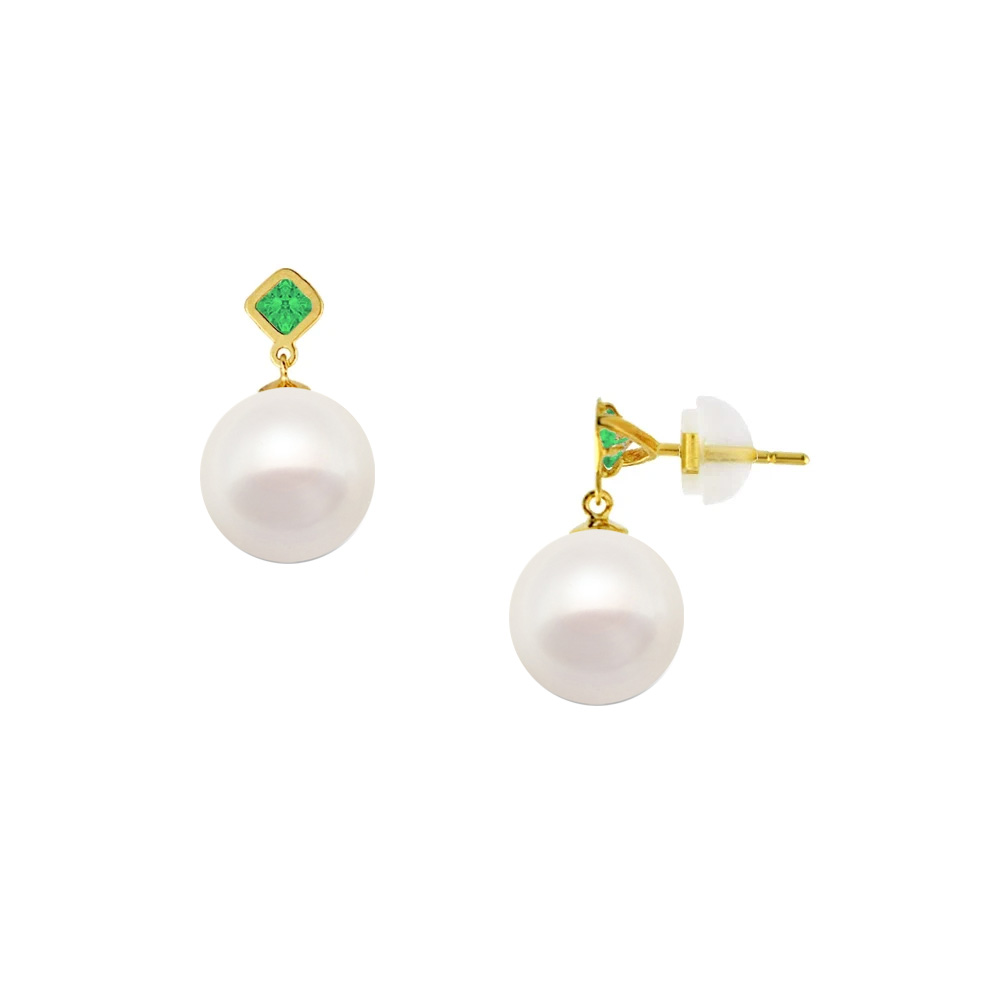 • Ένα φανταστικό ζευγάρι σκουλαρίκια με 2 εντυπωσιακά λευκά μαργαριτάρια  QTV Akoya Pearls σε σχήμα στρογγυλό, διαμέτρου 7,5 x 8 χιλιοστών.