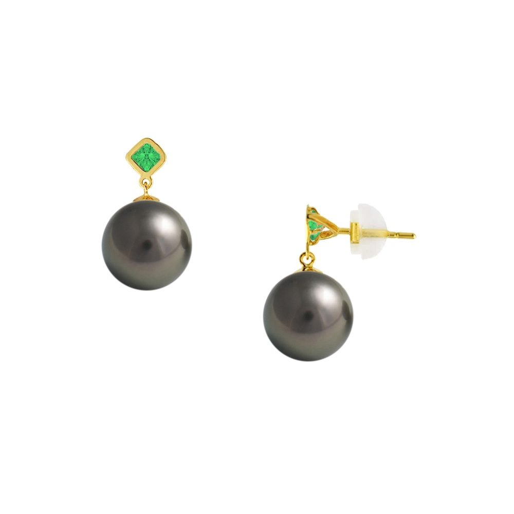 Σκουλαρίκια Κ14 χρυσά με μαύρα μαργαριτάρια και ζιργκόν Peridot - F126263GB
