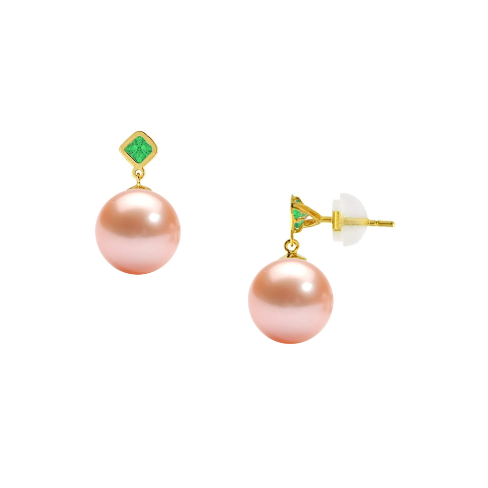 • Ένα φανταστικό ζευγάρι σκουλαρίκια με 2 εντυπωσιακά σομόν μαργαριτάρια  QTV Akoya Pearls σε σχήμα στρογγυλό, διαμέτρου 7,5 x 8 χιλιοστών.
