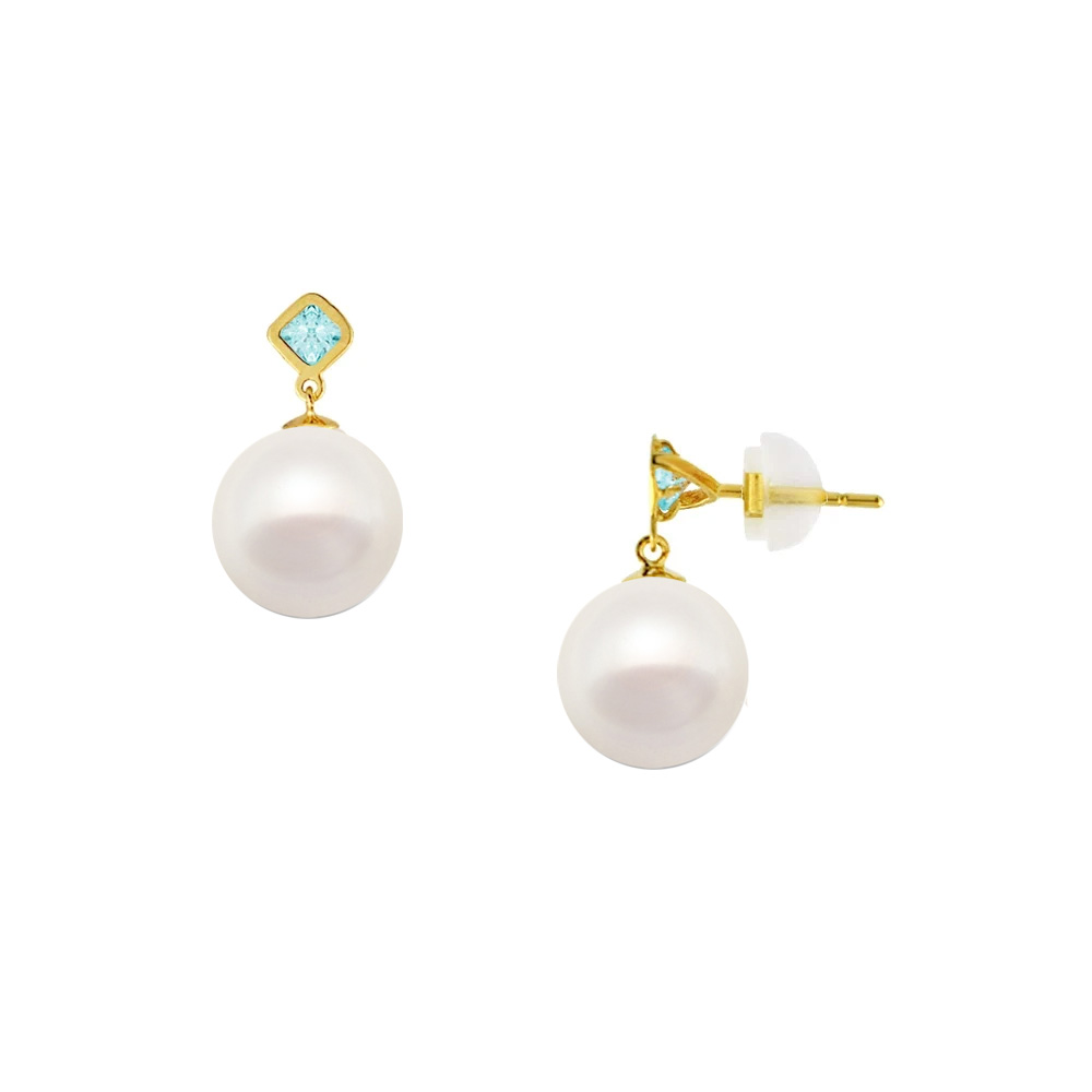 Σκουλαρίκια Κ14 χρυσά με λευκά μαργαριτάρια και ζιργκόν Aqua - F126263A