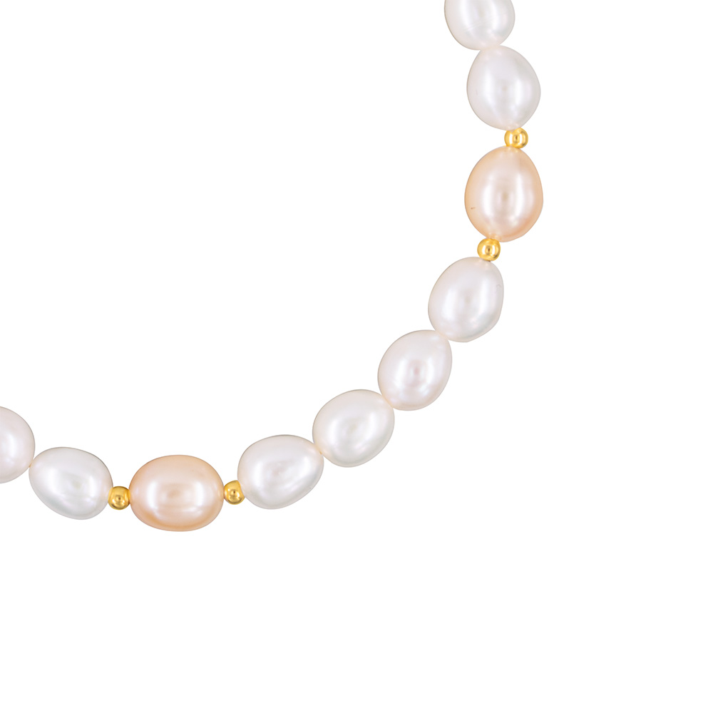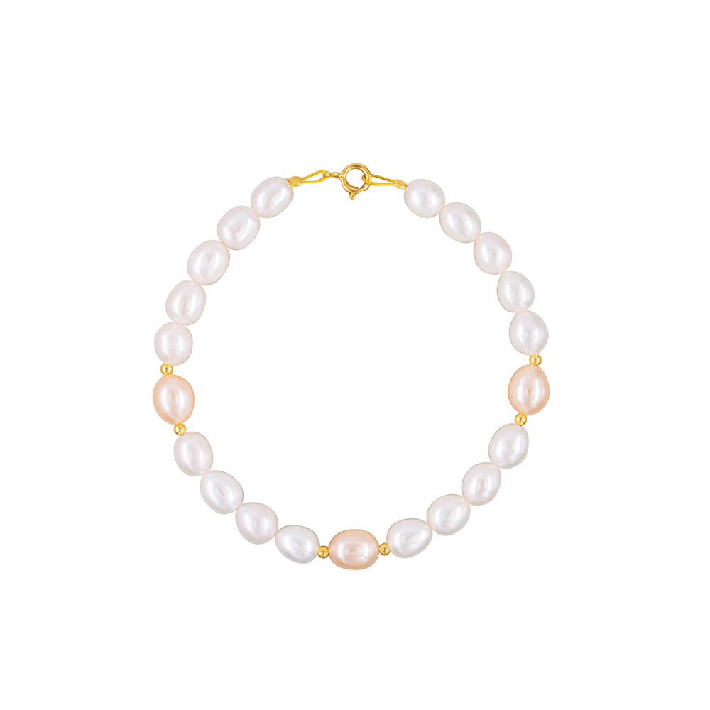 Βραχιόλι με Κ14 χρυσά στοιχεία και long μαργαριτάρια - F126265