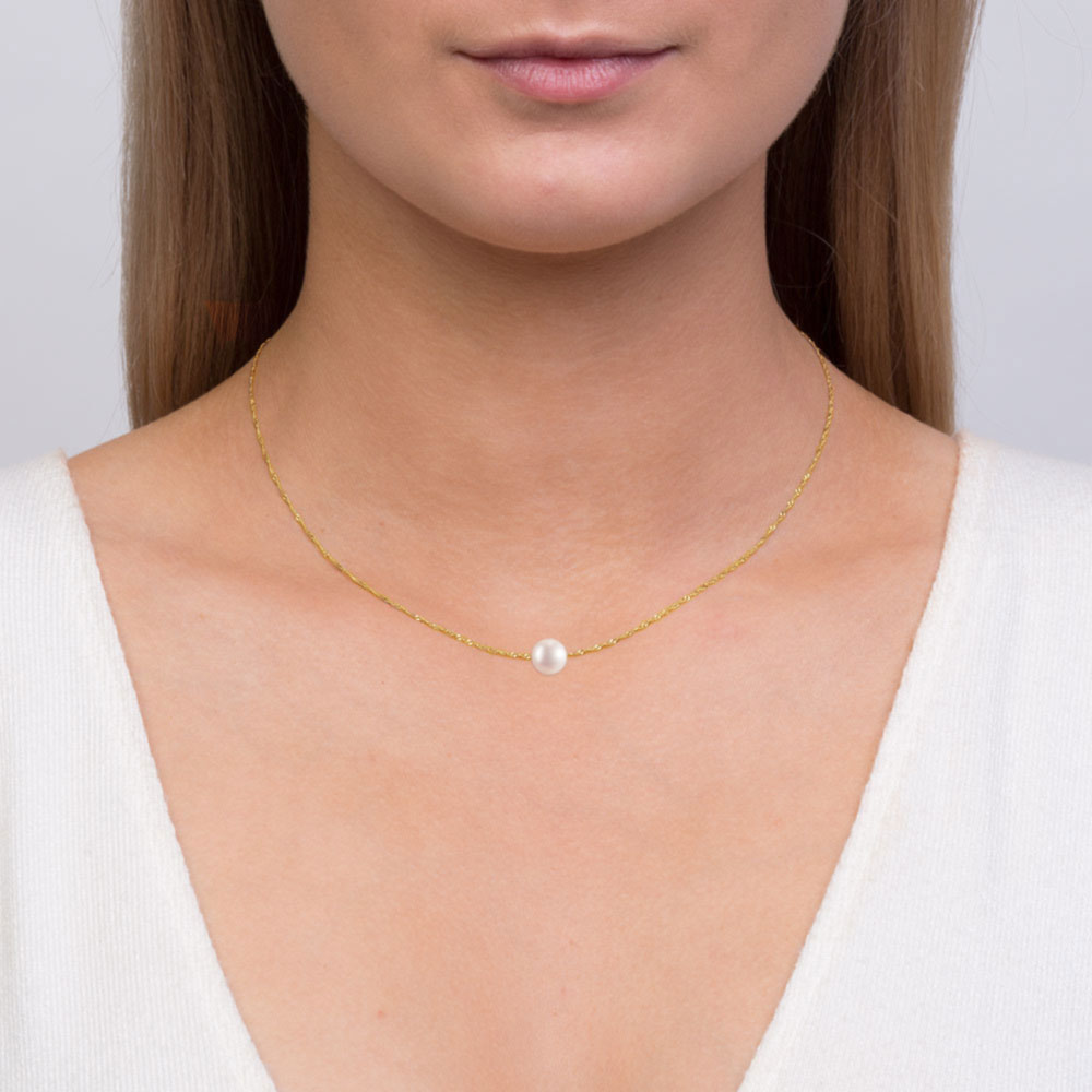 Κολιέ με μαργαριτάρι σε χρυσή αλυσίδα Κ14 - M123421