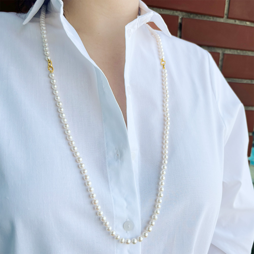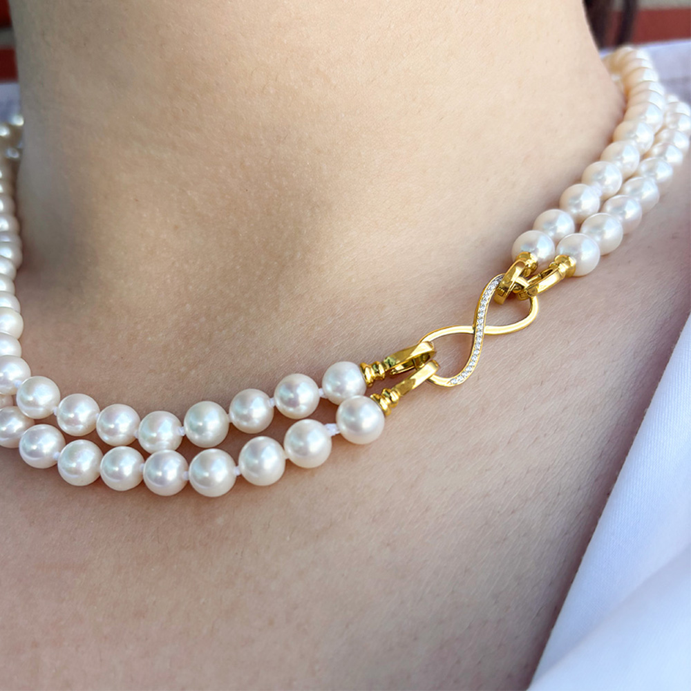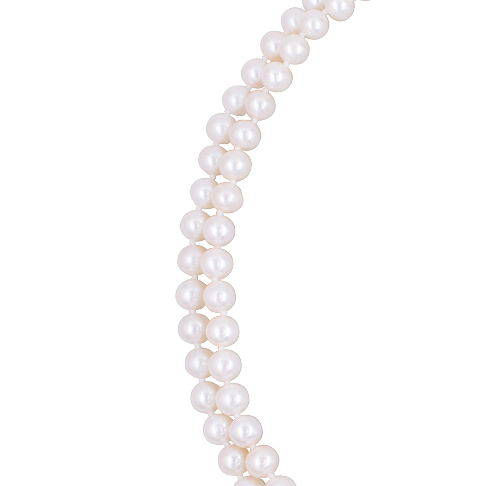 • Ένα υπέροχο κολιέ με 2 σειρές λευκά στρόγγυλα μαργαριτάρια Fresh Water Pearl διαμέτρου 6-6,5 χιλιοστών.
