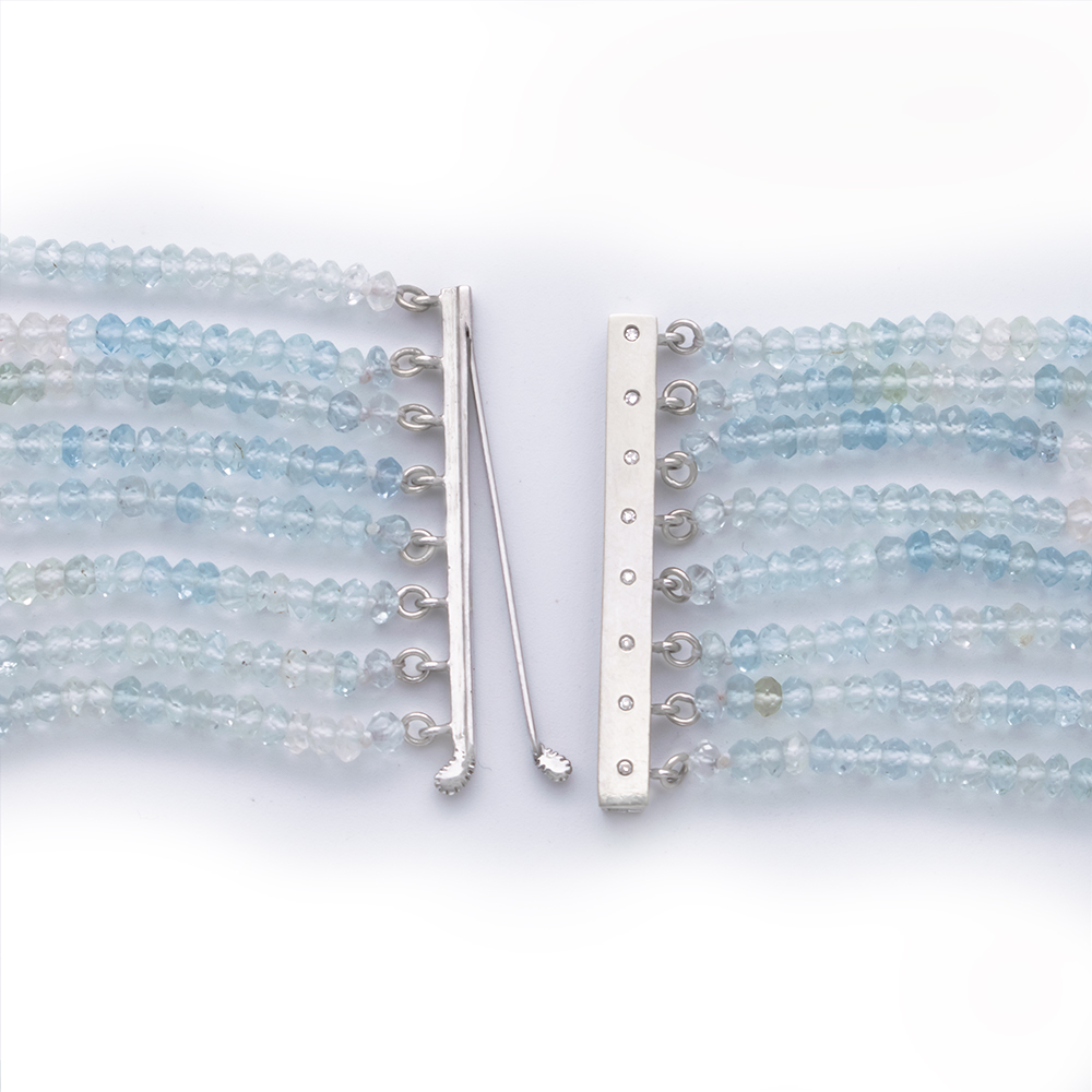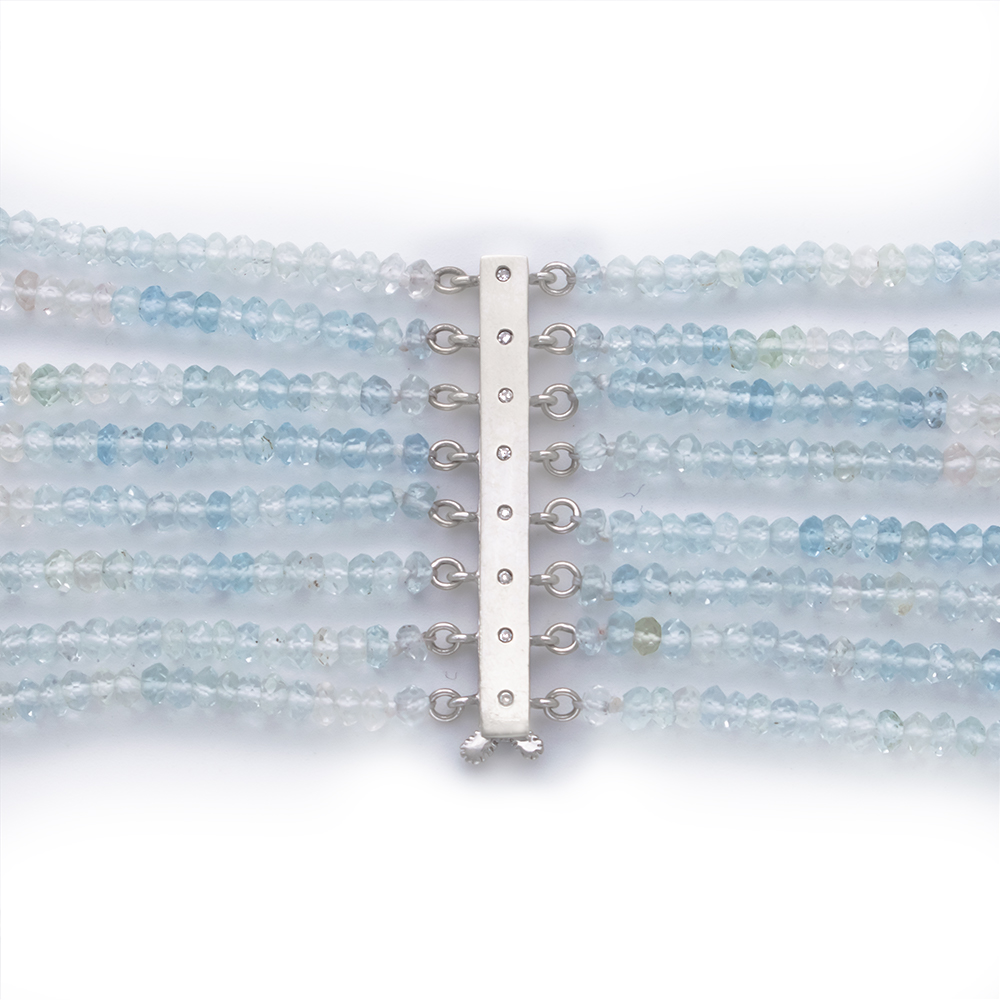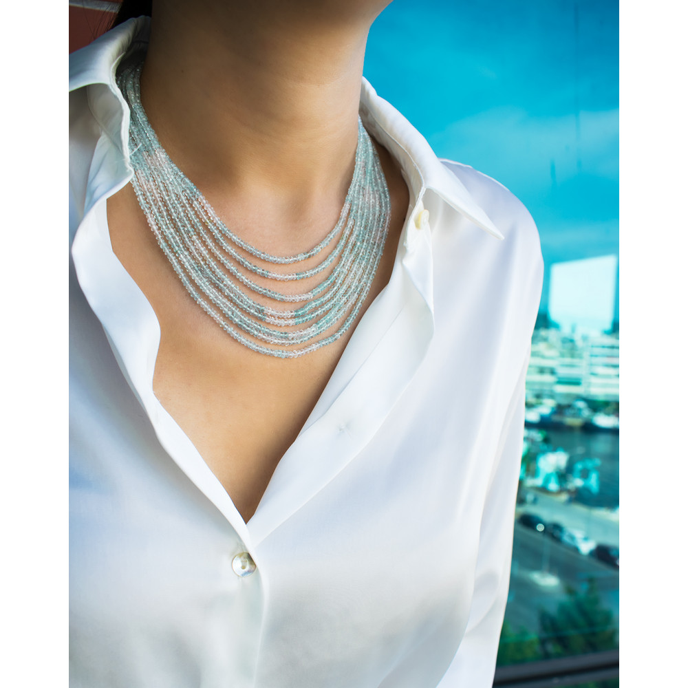 • Ένα μοναδικό κολιέ που αποτελείται από 8 σειρές διαφορετικού μήκους πολύχρωμη (multicolor) Aqua φασεταρισμένη διαμέτρου 3-3,5 χιλιοστών.
