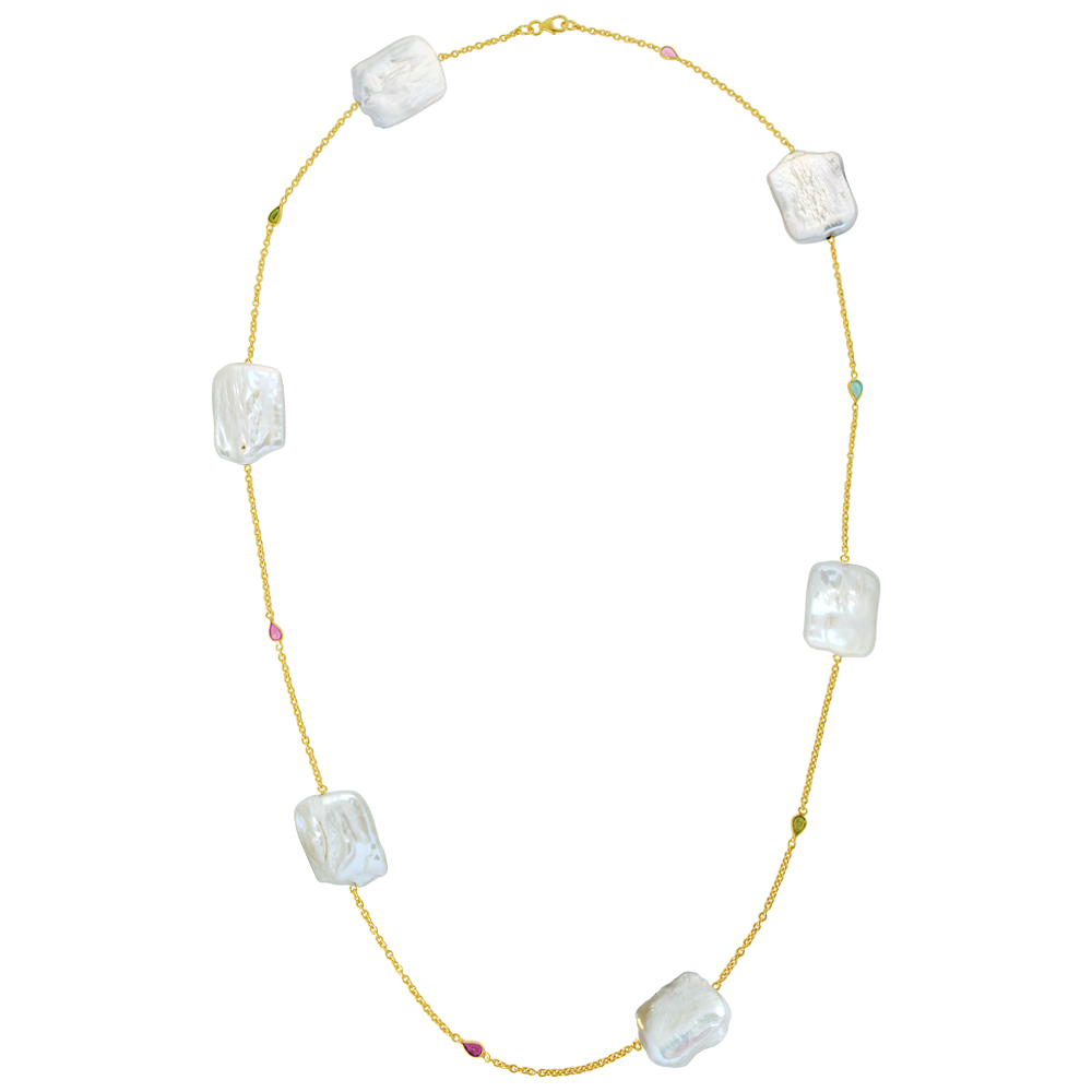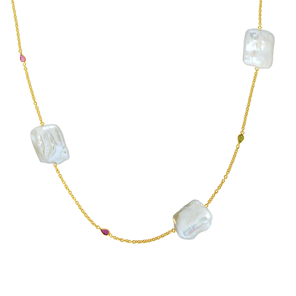 • Ένα υπέροχο κολιέ με μαργαριτάρια και ημιπολύτιμους λίθους σε επιχρυσωμένη αλυσίδα από ασήμι 925.