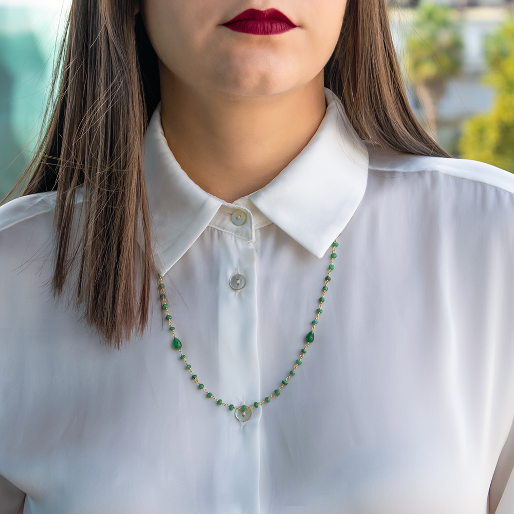 Κολιέ με σμαραγδίτες σε ασημένια αλυσίδα 925 - M122156