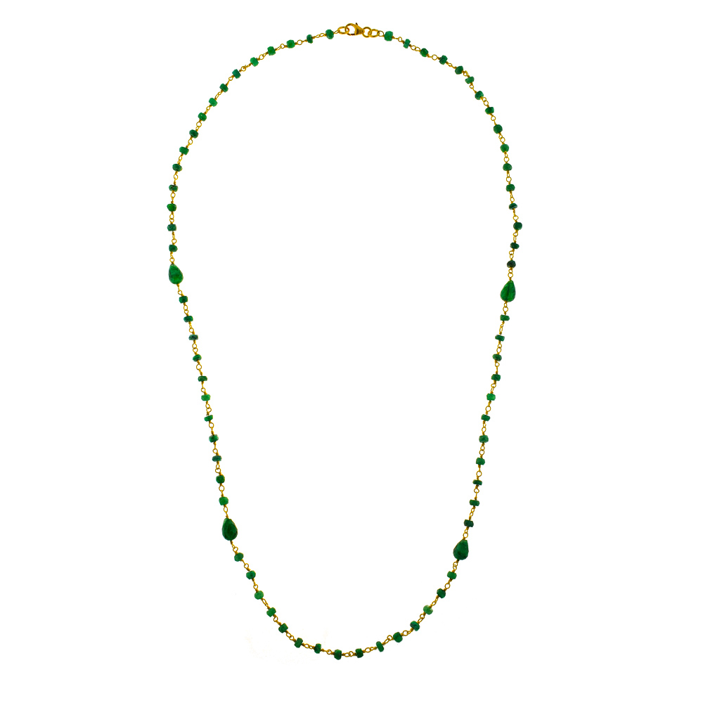 • Ένα υπέροχο κολιέ με σμαραγδίτες σε επιχρυσωμένη αλυσίδα από ασήμι 925. Το κολιέ αποτελείται από: