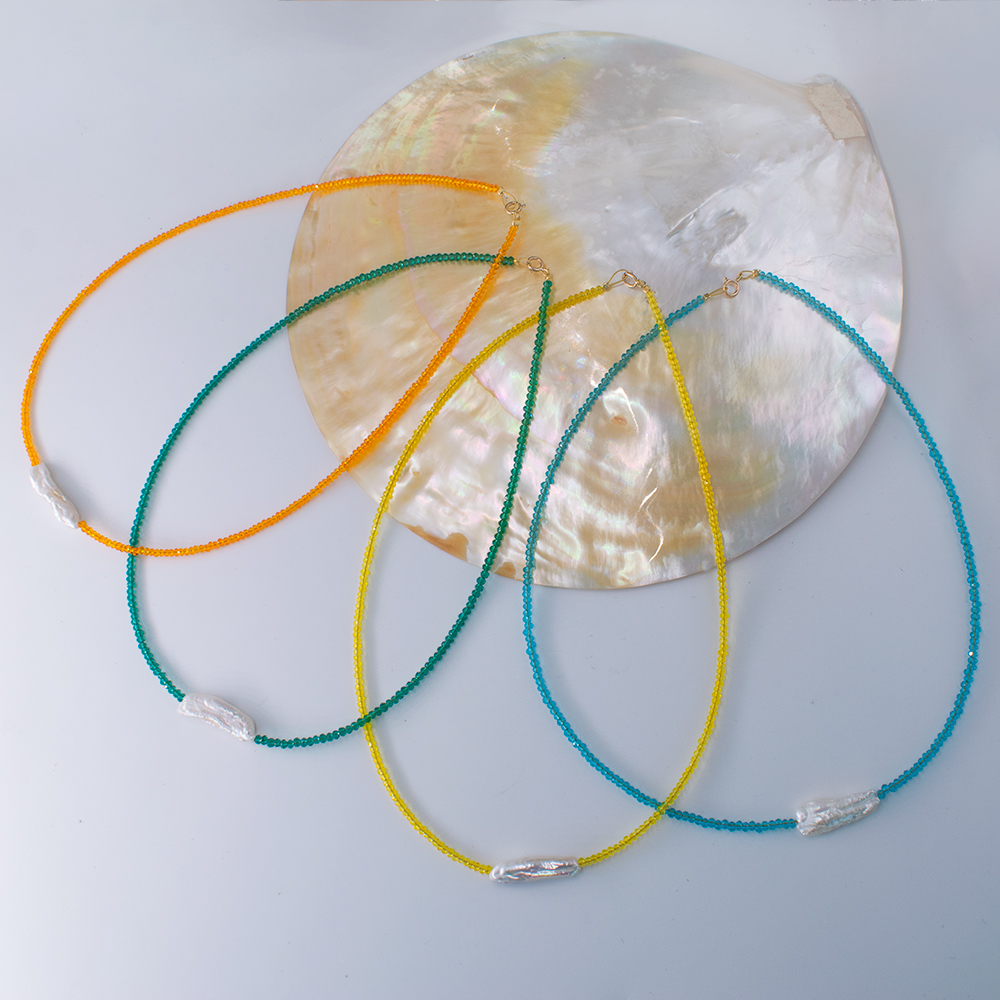 • Κολιέ με ημιπολύτιμο λίθο salomite blue, green, yellow και orange χρωματισμού διαμέτρου 2,5 χιλιοστών.