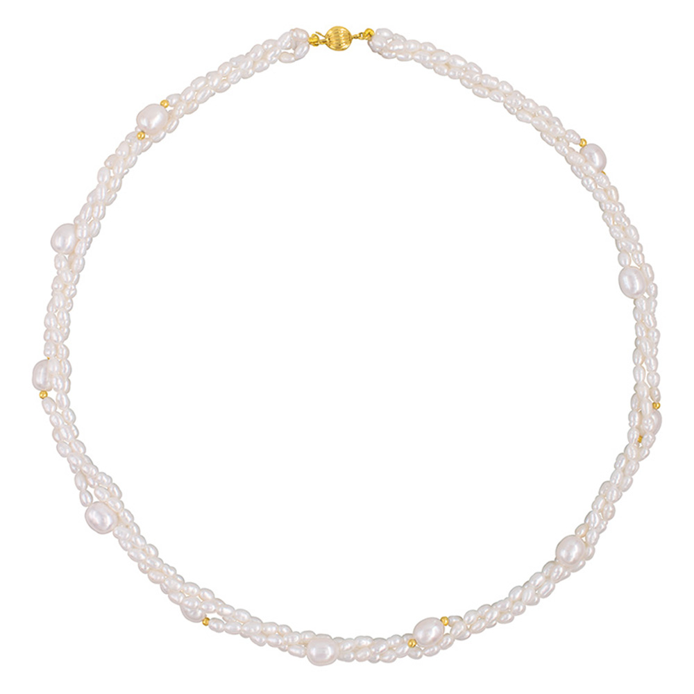 -6% Κολιέ με Κ14 χρυσό κούμπωμα και λευκά μαργαριτάρια - F126473