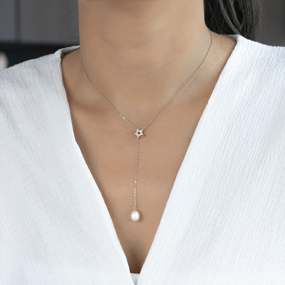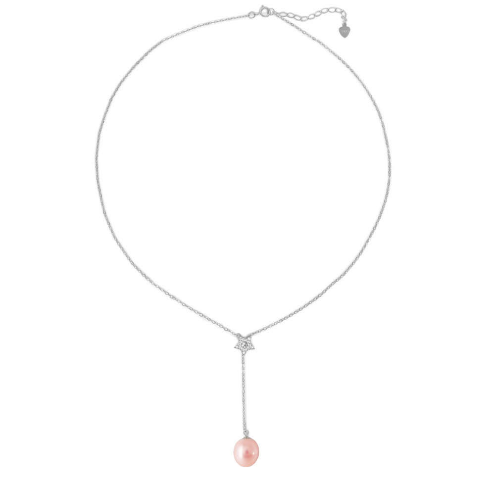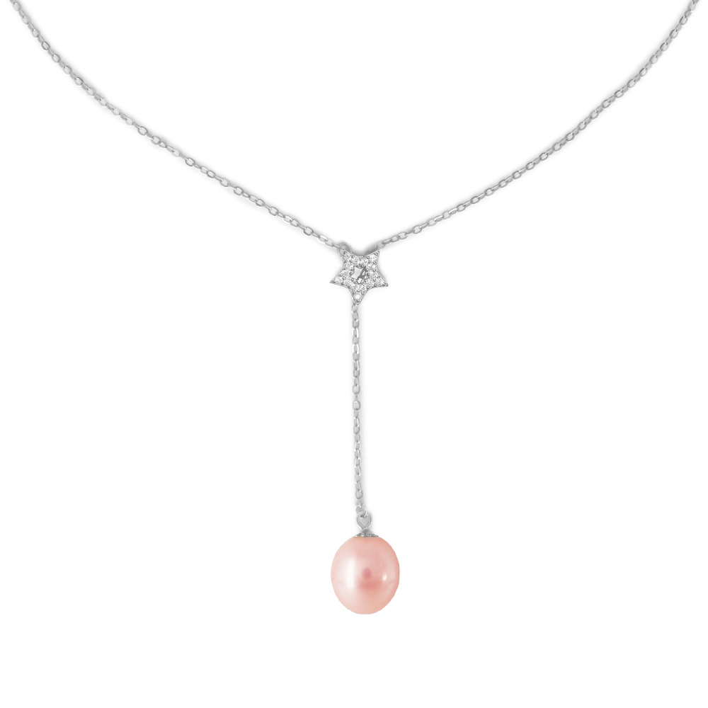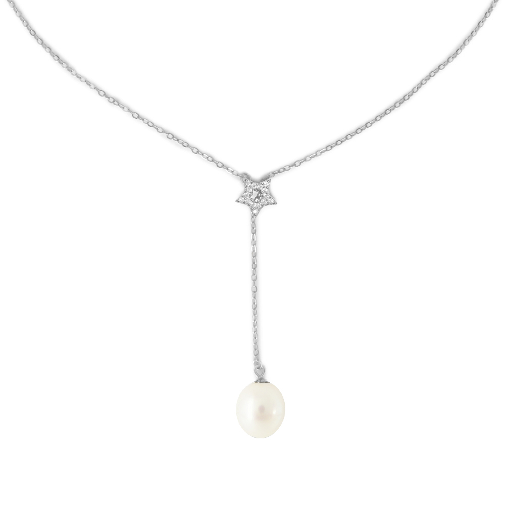 Κολιέ με μαργαριτάρι και ζιργκόν σε ασημένια αλυσίδα 925 - S124336