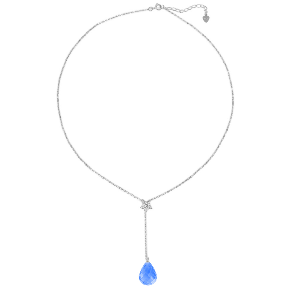 • Ένα υπέροχο κολιέ με ασημένια αλυσίδα 925 και ημιπολύτιμο λίθο Blue Topaz Cubic Zircon διαμέτρου 12x16 πολυεδρικής κοπής.
