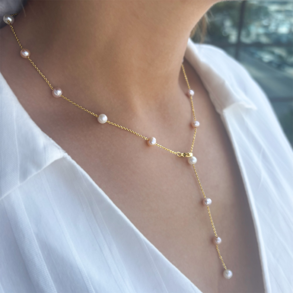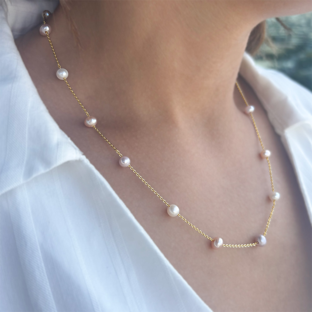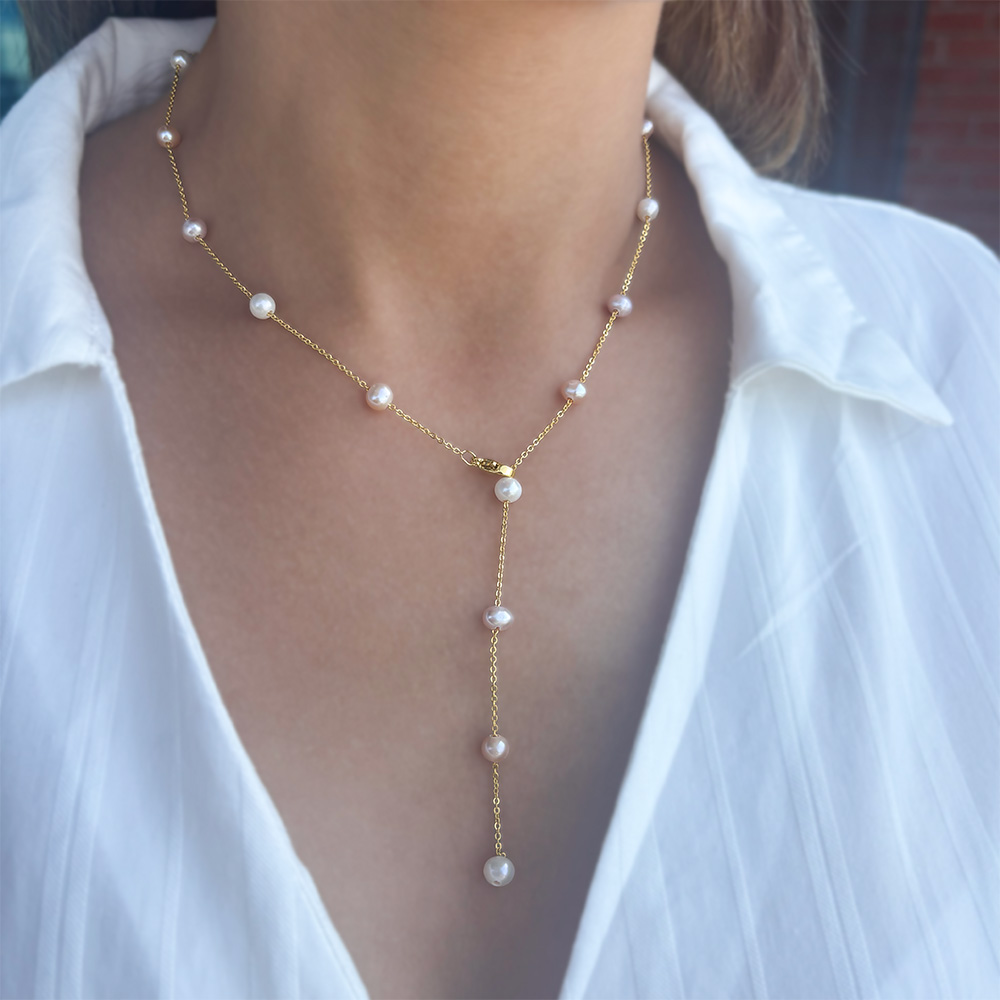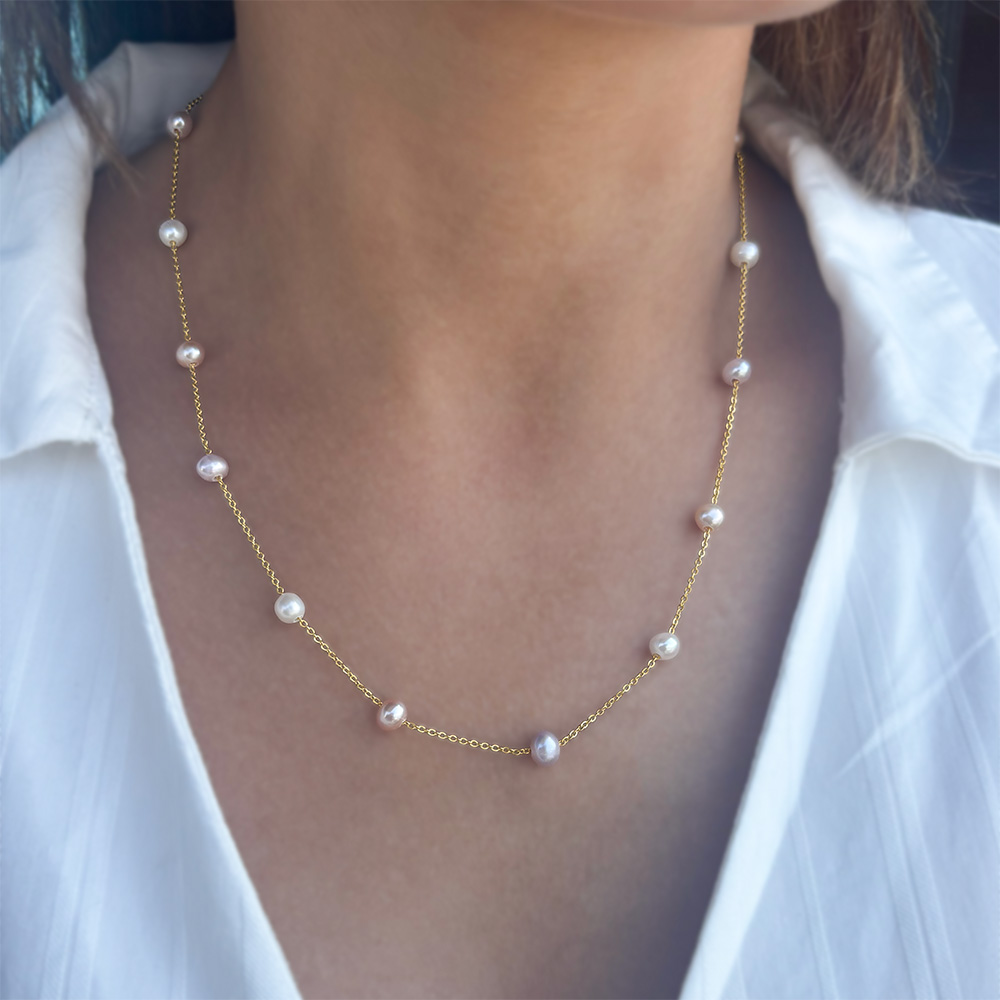 • Ένα υπέροχο κολιέ ροζάριο με αλυσίδα επιχρυσωμένη η οποία είναι διακοσμημένη με πολύχρωμα μαργαριτάρια Fresh Water Pearl διαμέτρου 6 χιλιοστών.
