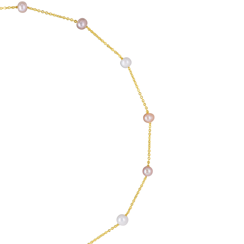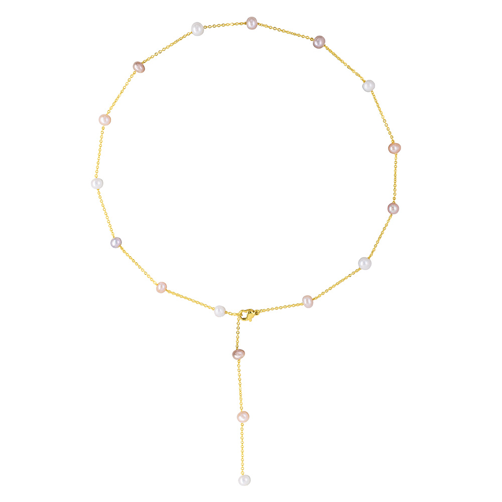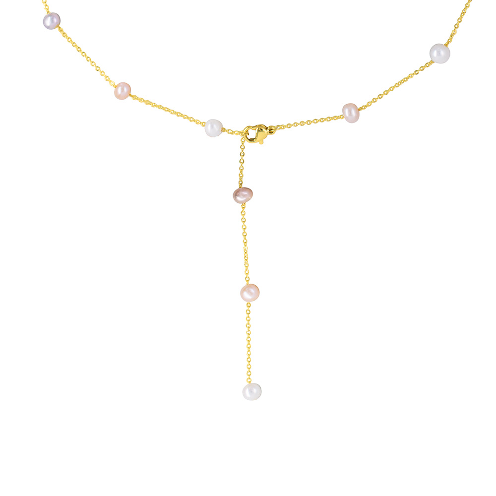 Κολιέ- ροζάριο με πολύχρωμα μαργαριτάρια σε επιχρυσωμένη αλυσίδα - S126009