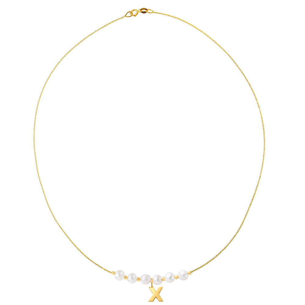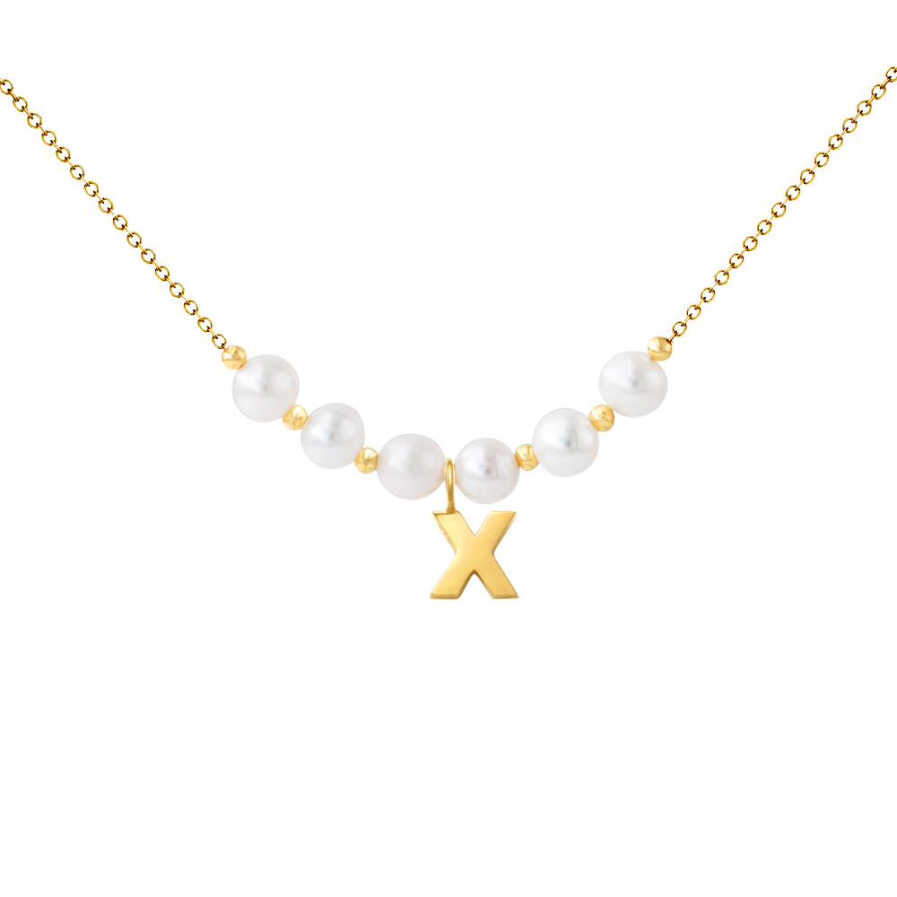 Κολιέ αλυσίδα Κ14 χρυσή με λευκά μαργαριτάρια και μενταγιόν μονόγραμμα - F124950X