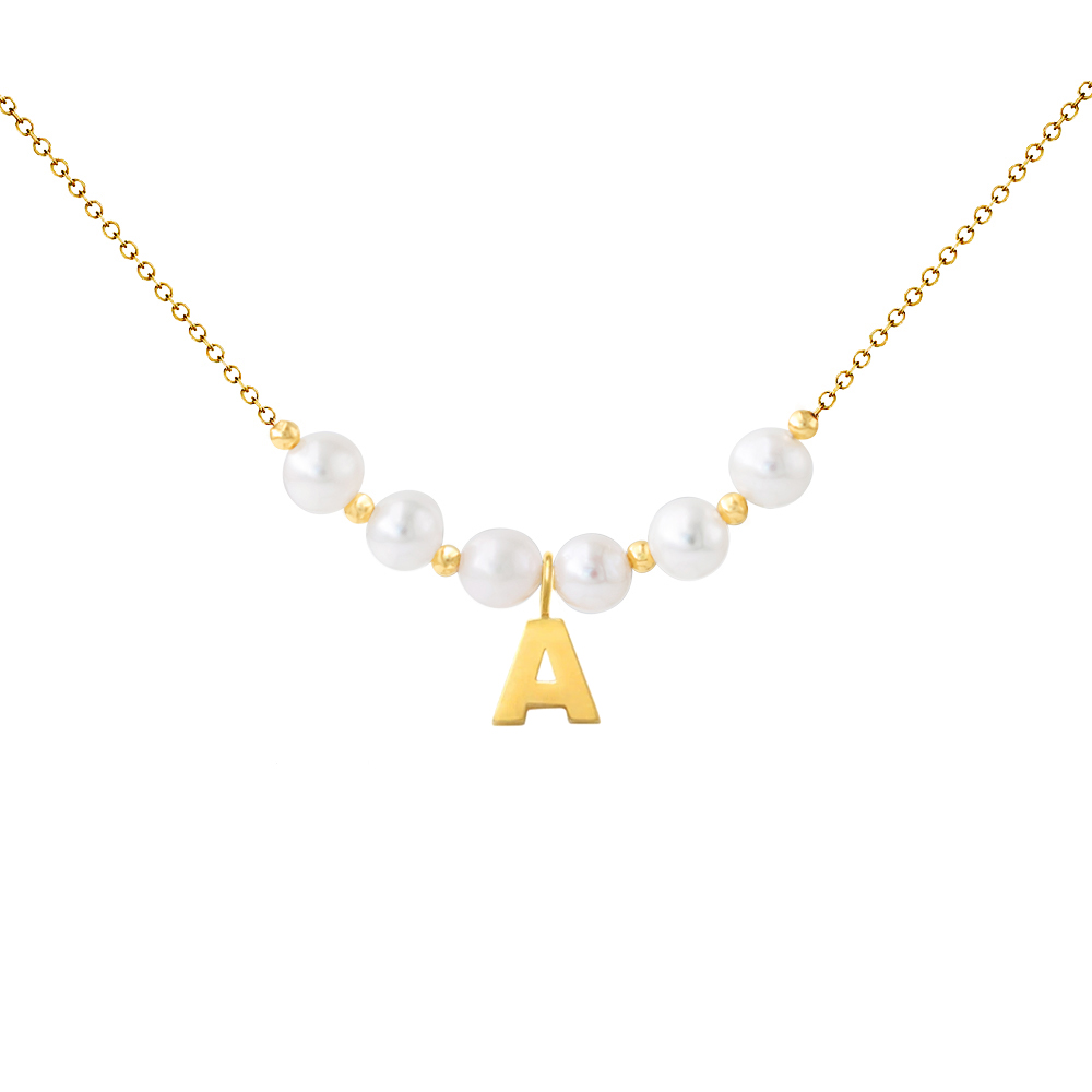 Κολιέ αλυσίδα Κ14 χρυσή με λευκά μαργαριτάρια και μενταγιόν μονόγραμμα - F124950A