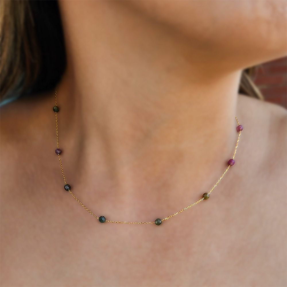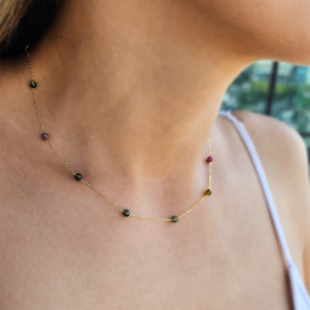 Κολιέ με τουρμαλίνη σε Κ14 χρυσή αλυσίδα - F124247TRM