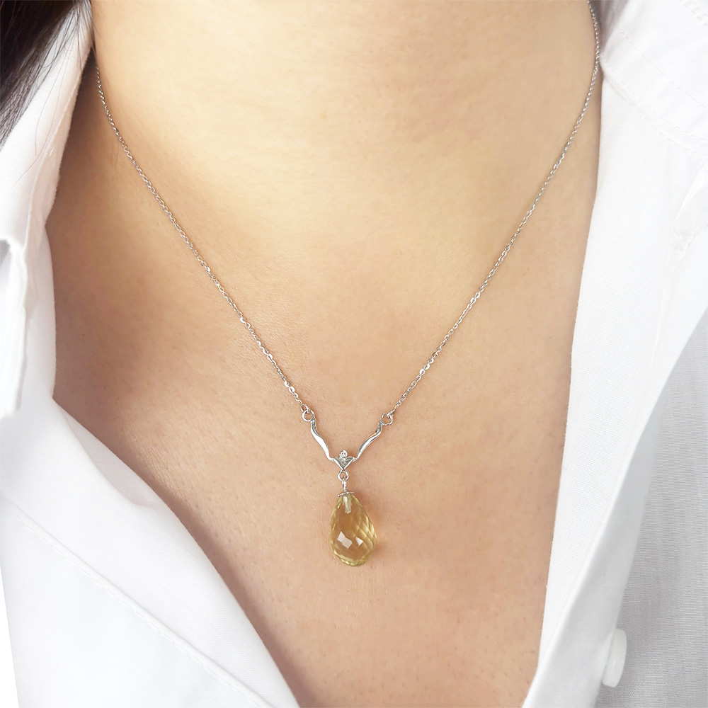 Κολιέ με Κ18 λευκόχρυση αλυσίδα, διαμάντι και lemon quartz - F312904