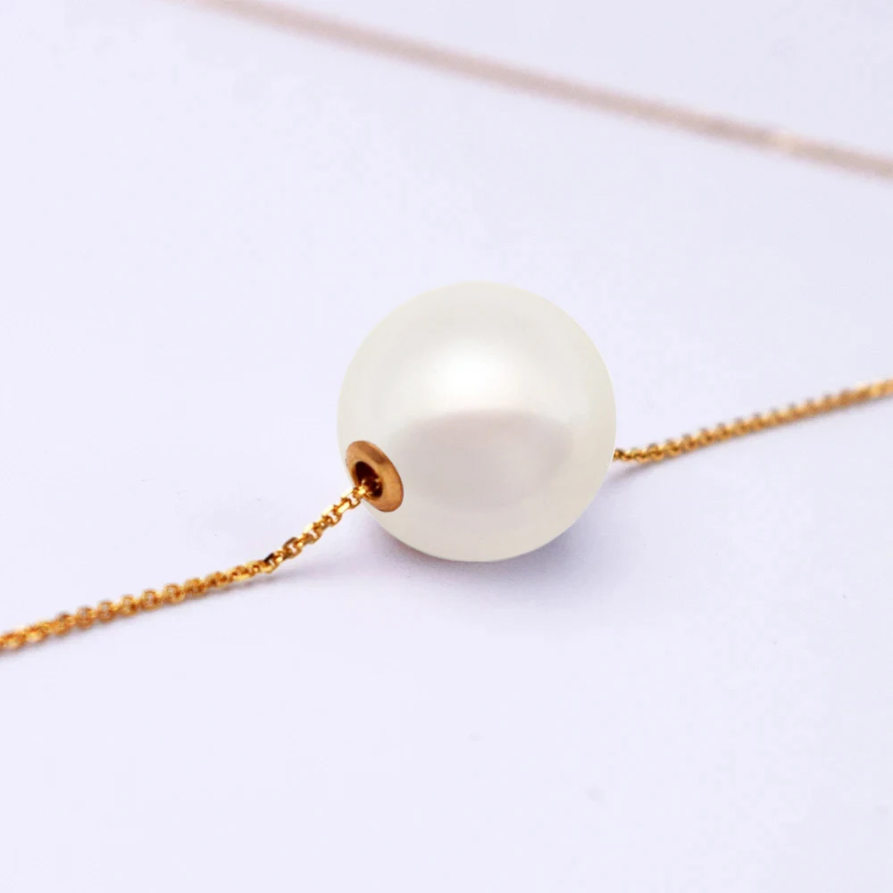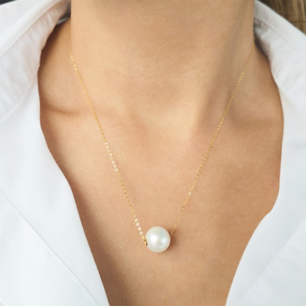 Κολιέ με Κ18 χρυσή αλυσίδα και λευκό μαργαριτάρι - F126645
