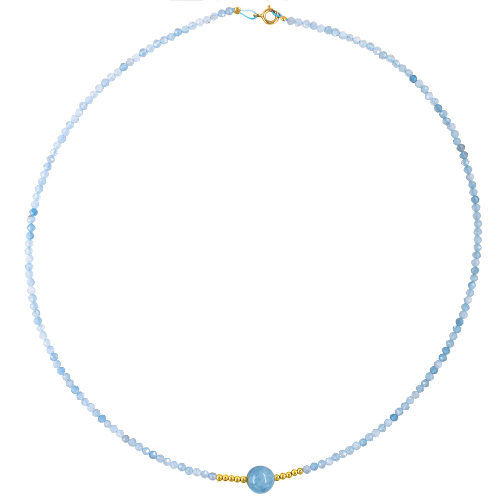 • Ένα υπέροχο κολιέ με ημιπολύτιμο λίθο aqua διαμέτρου 2 χιλιοστών πολυεδρικής κοπής.