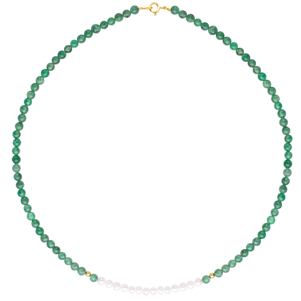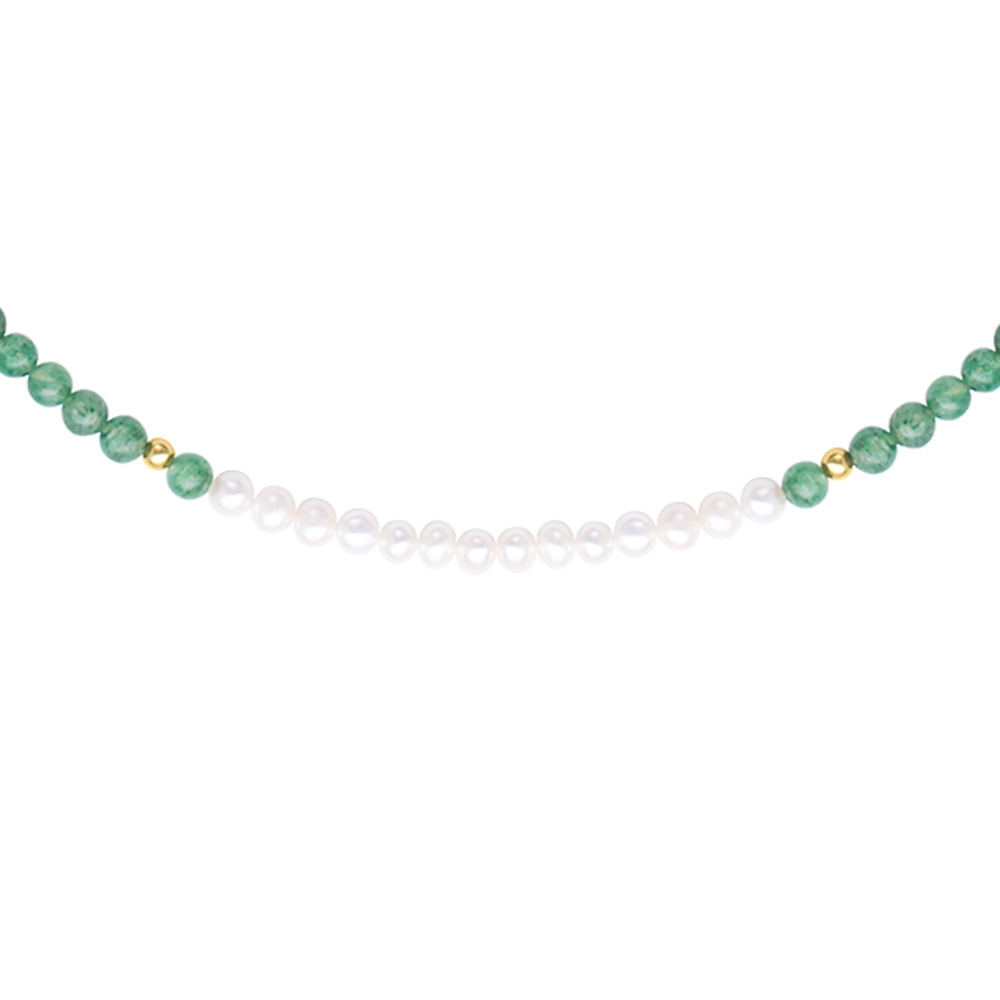Κολιέ με Κ14 χρυσά στοιχεία, αβεντουρίνη και μαργαριτάρια - F124463