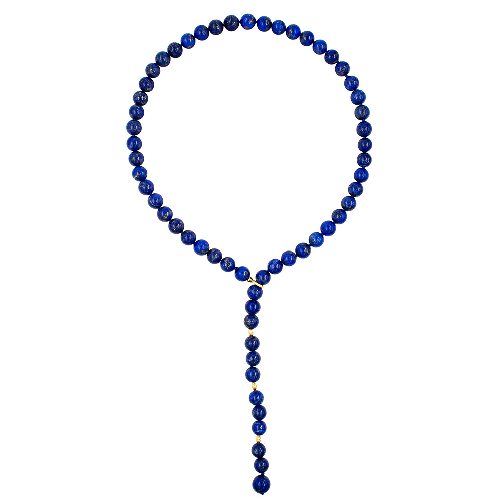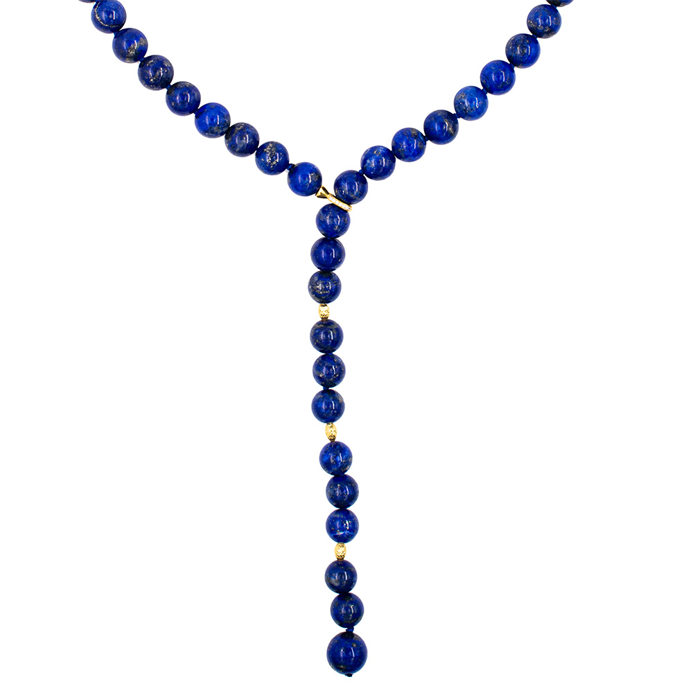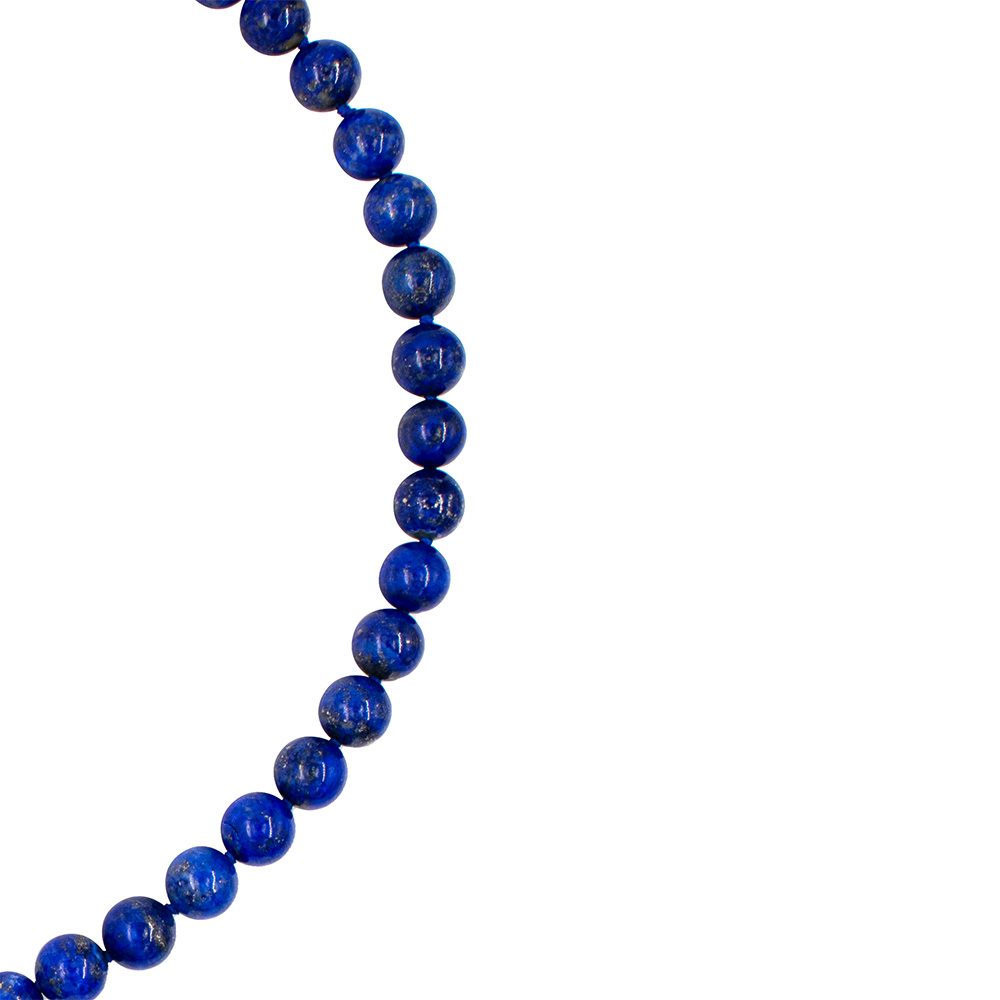 • Ένα υπέροχο κολιέ με στρόγγυλο ημιπολύτιμο λίθο Λάπις διαμέτρου 8 χιλιοστών και καταλήγει σε ένα Λάπις διαμέτρου 10 χιλιοστών.