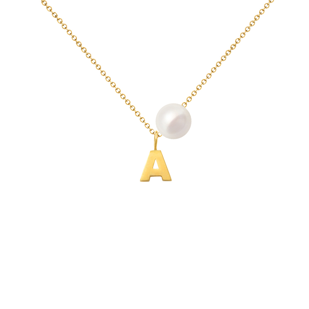 Κολιέ με Κ14 χρυσή αλυσίδα, μενταγιόν μονόγραμμα και μαργαριτάρι - F124605W