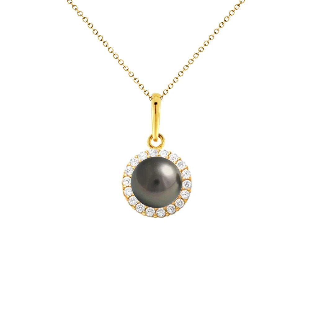 Κολιέ με μενταγιόν Κ14 χρυσό με μαύρο μαργαριτάρι Akoya και ζιργκόν - G124533BCH