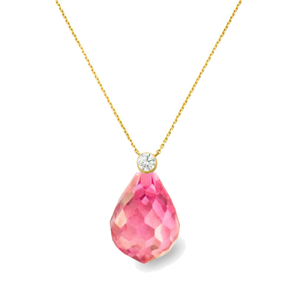 • Ένα υπέροχο κολιέ με χρυσή αλυσίδα 14 καρατίων και έναν ημιπολύτιμο λίθο Pink Quartz 12x16 χιλιοστών σε σχήμα Drop (σταγόνα).