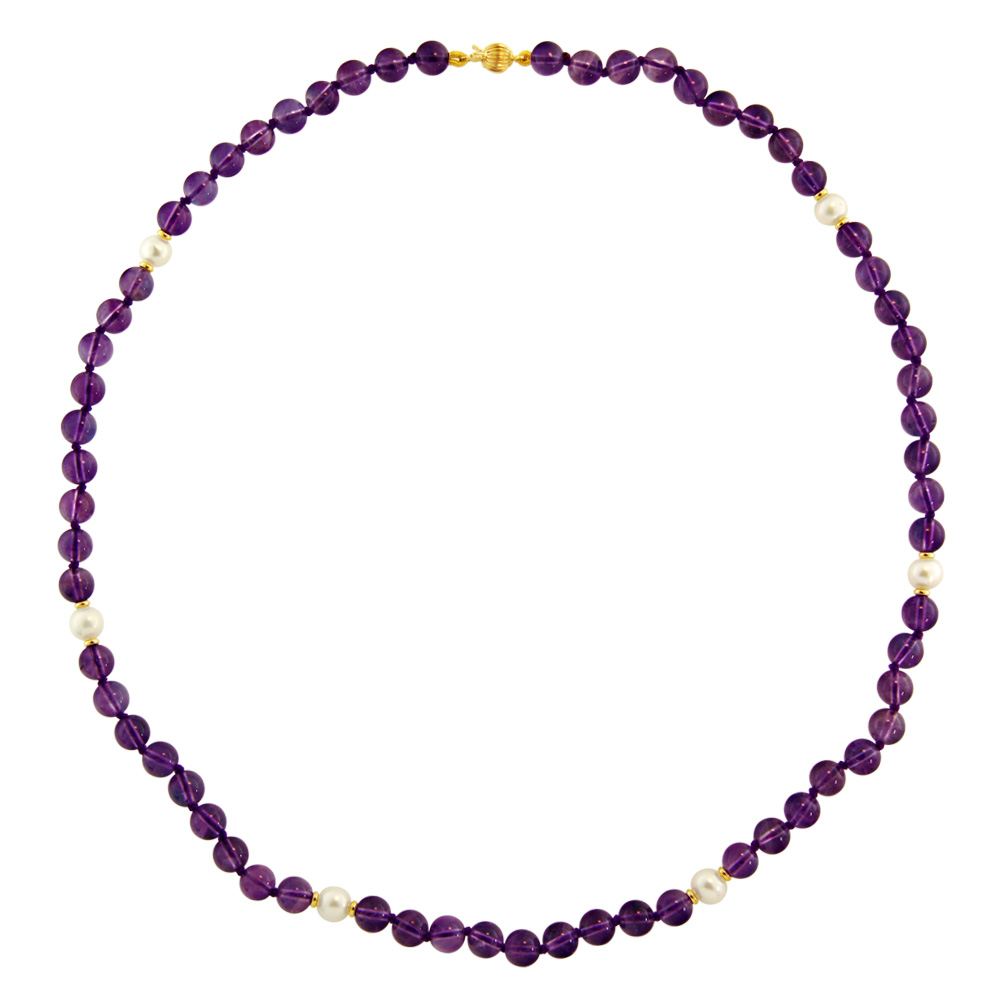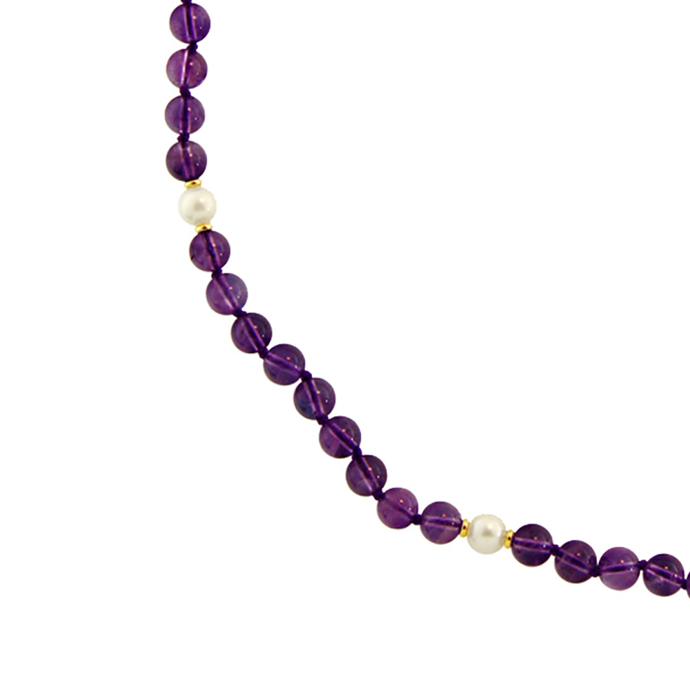 • Ένα υπέροχο κολιέ από ημιπολύτιμους λίθους αμέθυστου διαμέτρου 6 χιλιοστών.