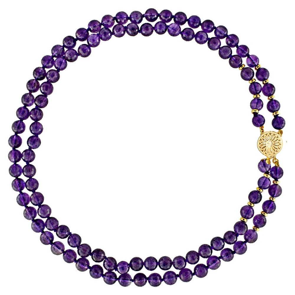 • Ένα υπέροχο κολιέ από 2 σειρές ημιπολύτιμους λίθους Αμέθυστου διαμέτρου χιλιοστά.