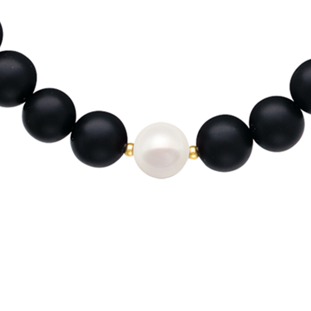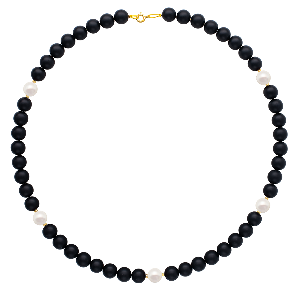 Κολιέ με Κ14 χρυσό κούμπωμα, Black Agate και λευκά μαργαριτάρια - F125301P