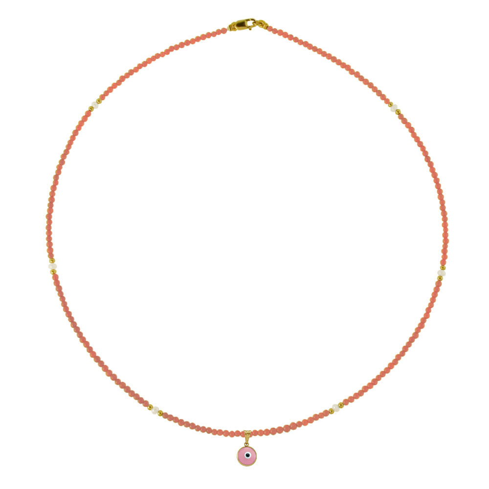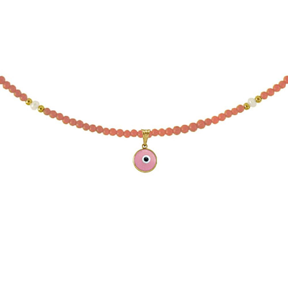 Κολιέ με χρυσά στοιχεία 14K, ανοιχτόχρωμα κοράλλια και χρυσό μενταγιόν - M320011CL