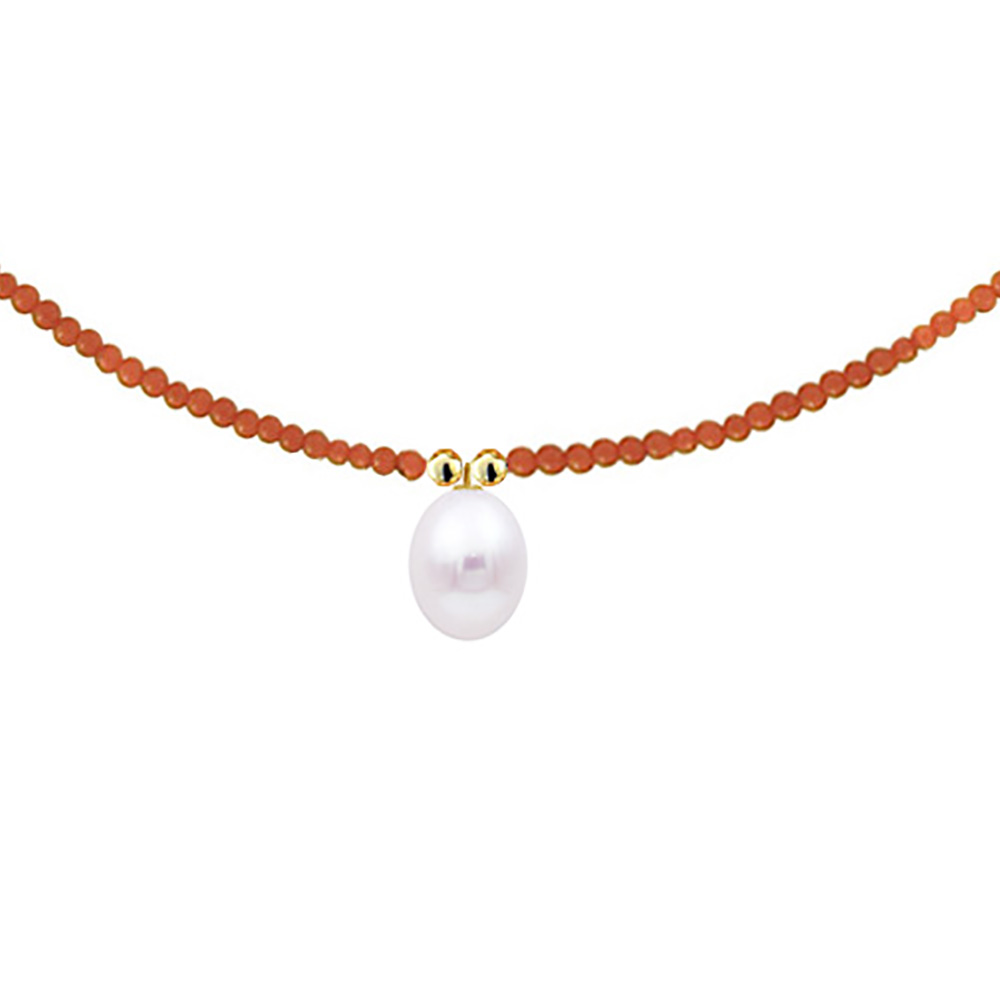 Κολιέ κοράλλι με μαργαριτάρι και χρυσά στοιχεία K14 - M123842LC