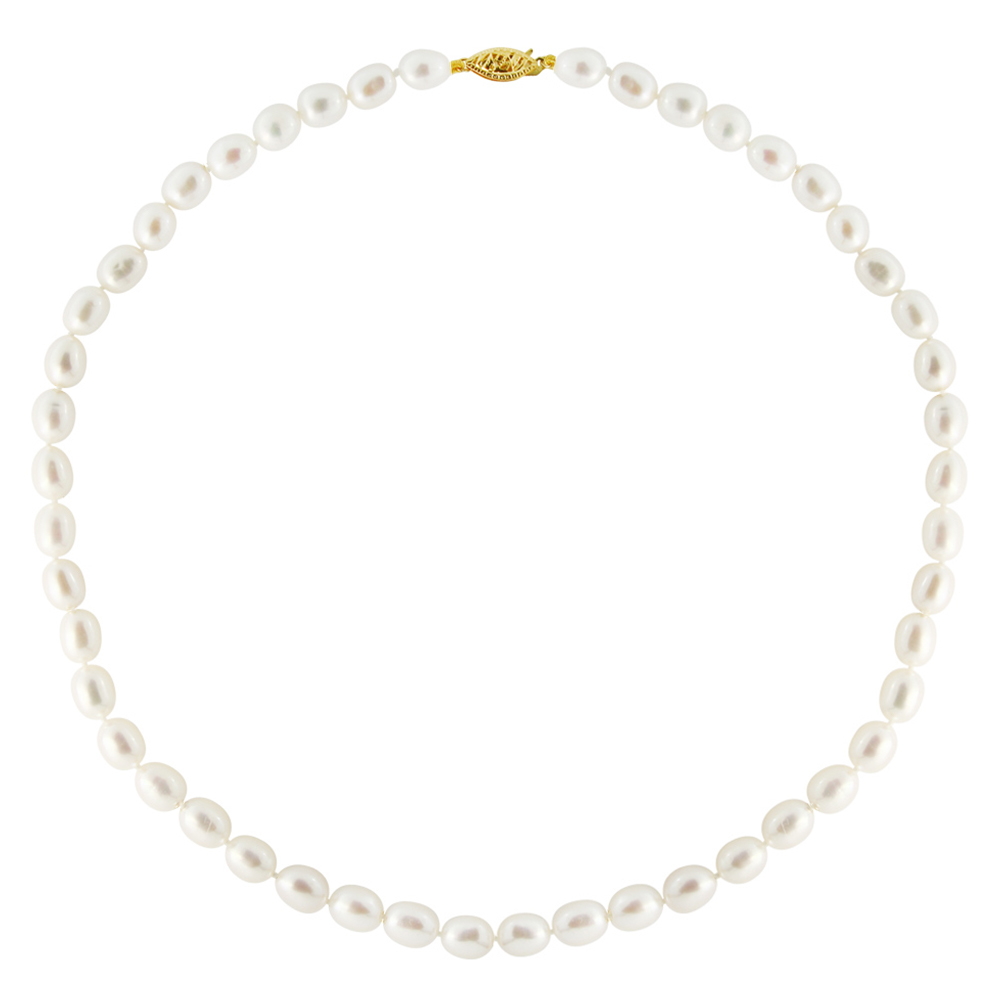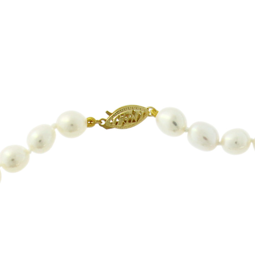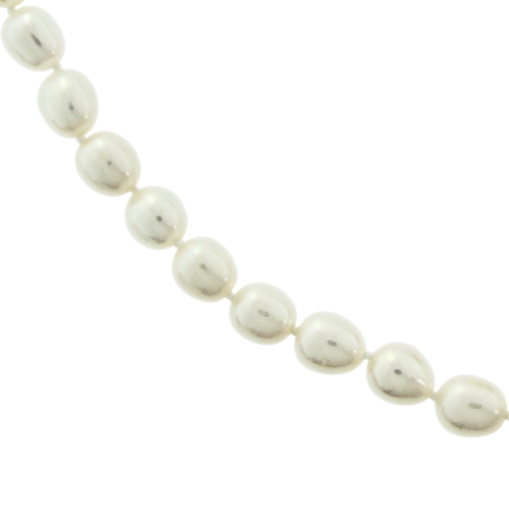 • Ένα υπέροχο κολιέ από λευκά μαργαριτάρια γλυκού νερού Fresh Water Pearl διαμέτρου 7Χ8 χιλιοστών.
