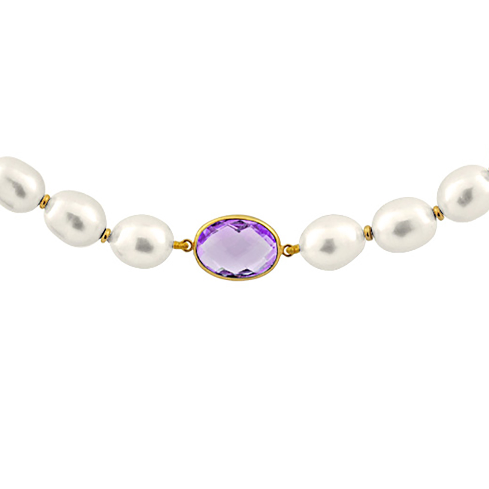 Κολιέ με Κ14 χρυσά στοιχεία, λευκά μαργαριτάρια και αμέθυστο - M123165A