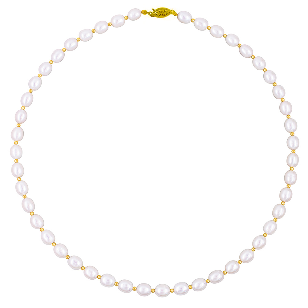 Κολιέ με λευκά μαργαριτάρια και χρυσό κούμπωμα Κ14 - M316913
