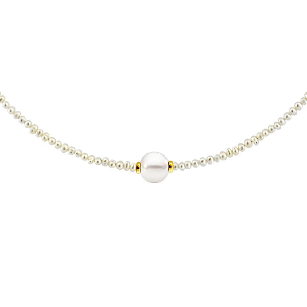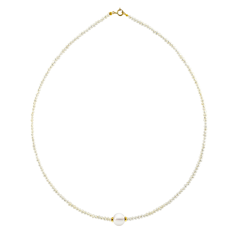 Κολιέ με Κ14 χρυσό κούμπωμα και λευκά μαργαριτάρια - M122033